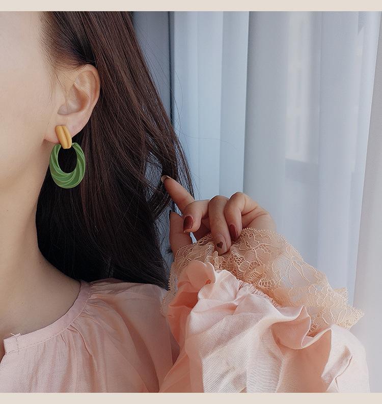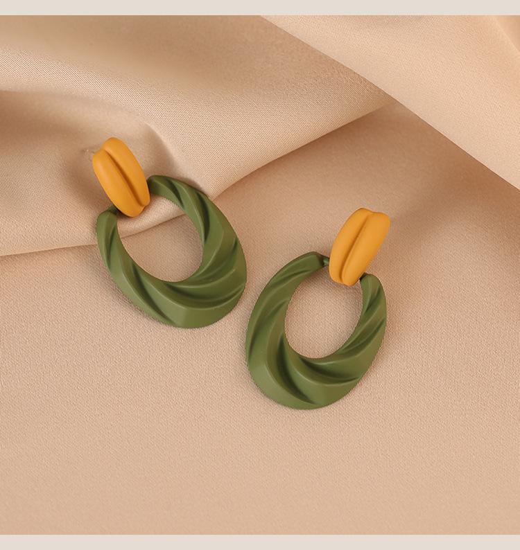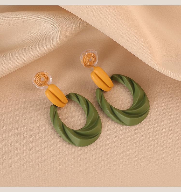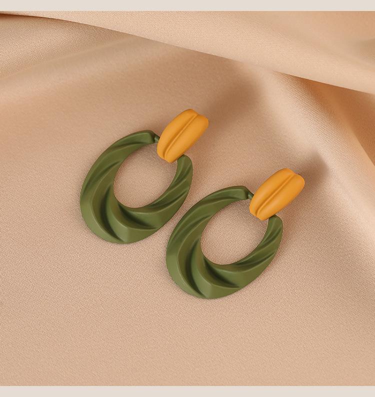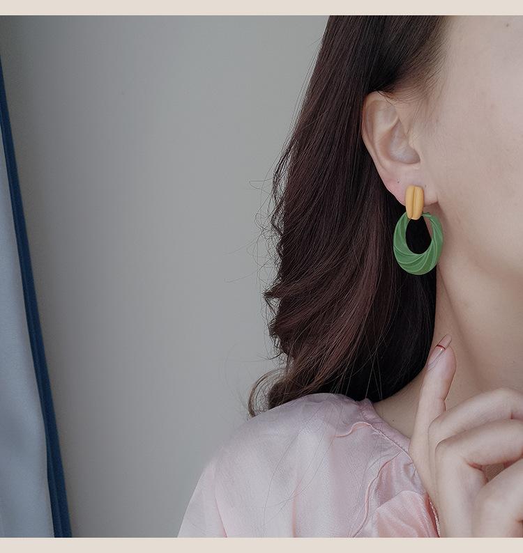 Pendientes de botón franceses retro con diseño de nicho, pendientes de lujo ligeros de alta calidad verdes, pendientes con clip para la oreja con espiral antimosquitos sin orejas perforadas