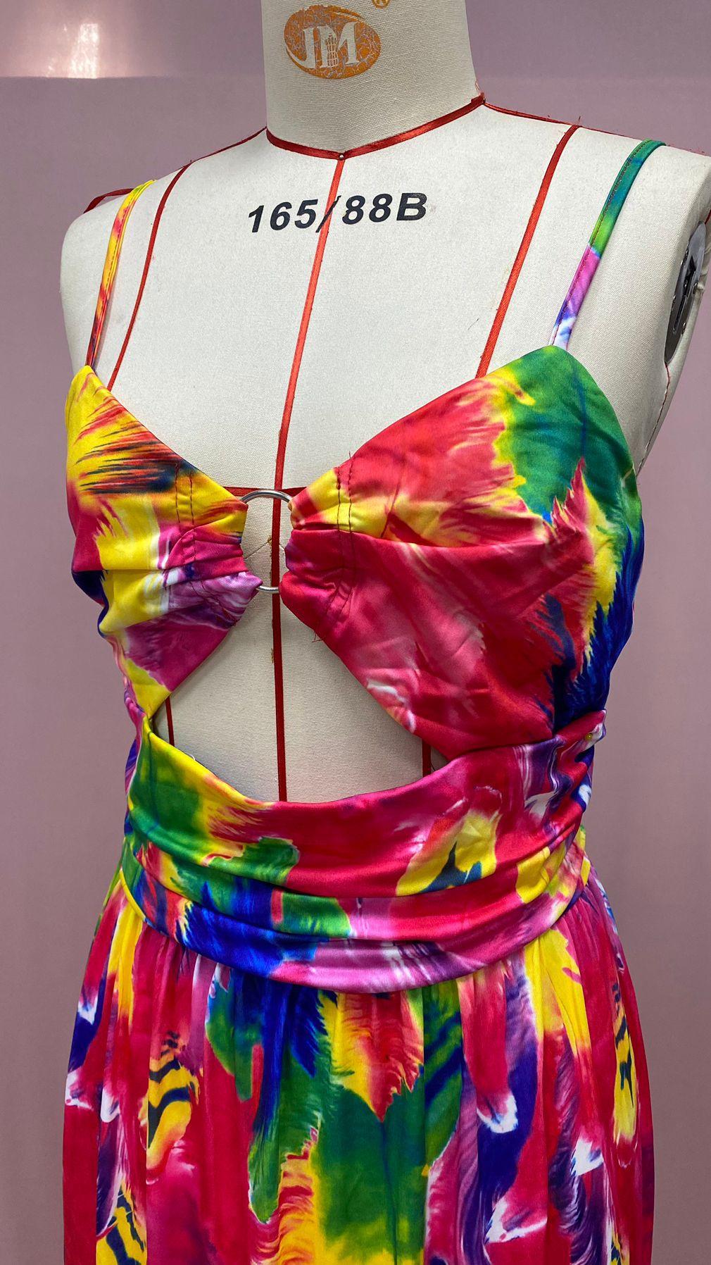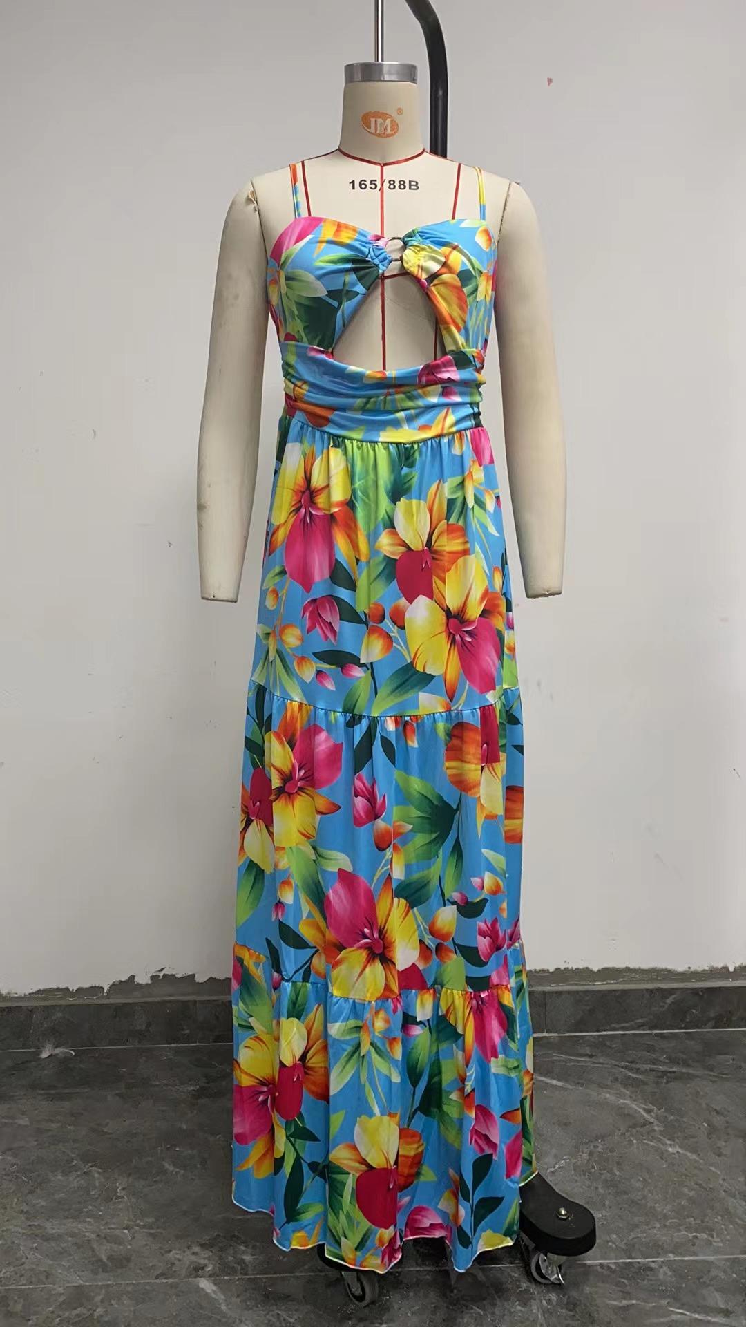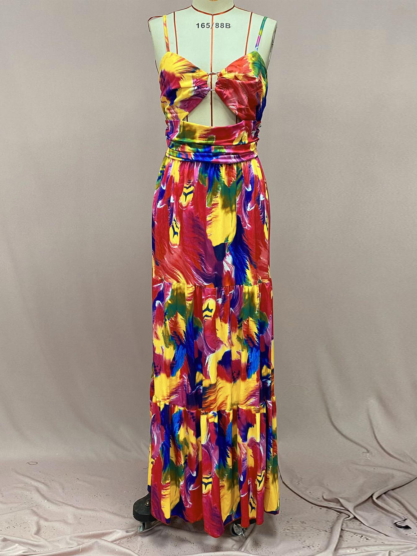 Y9335 2025 Verano Transfronterizo Nuevo Ropa Europea y Americana Vestido Sexy de Tirantes Estampado Sin Mangas Espalda Descubierta Falda Larga