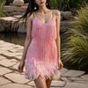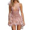 Ropa Europea y Americana 2025 Wish Suministro de Exportación Falda de Tirantes de Plumas Vestido Sexy de Fiesta de Club Nocturno con Cuello en V Profundo