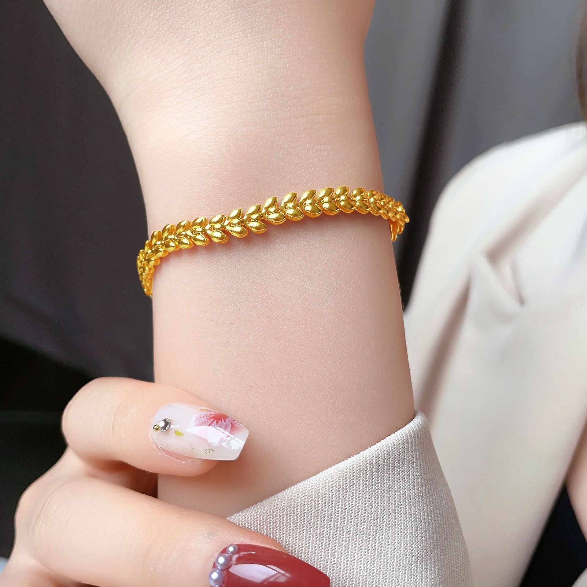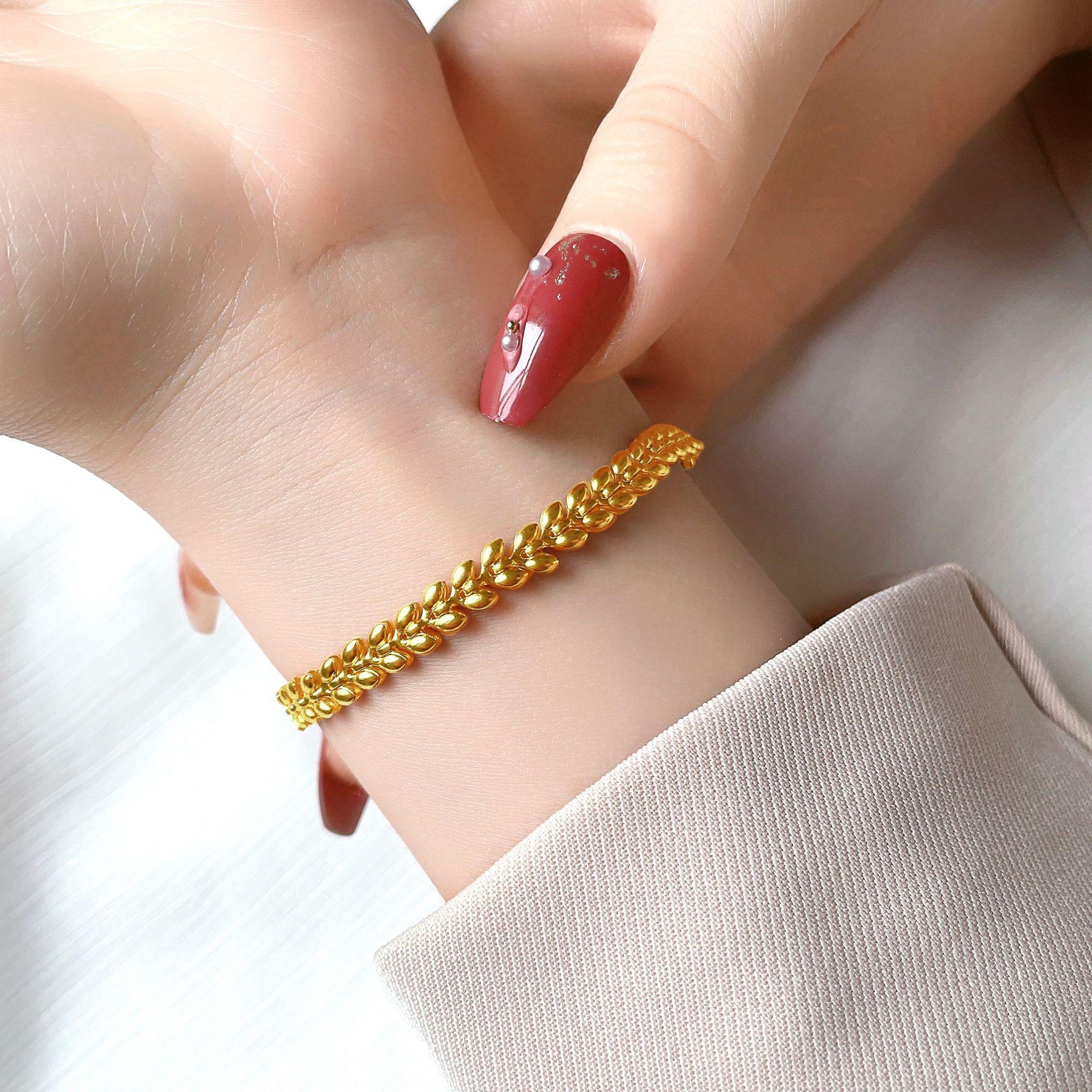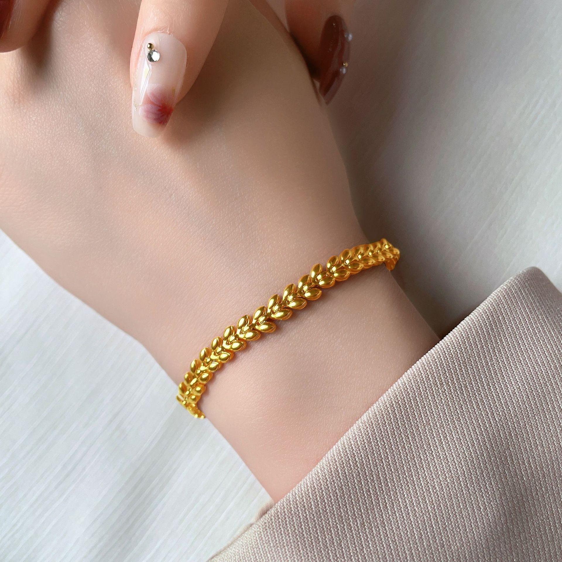 Pulsera Europea y Americana de Trigo Dorado para Mujer 2023 Nueva Tendencia ins Diseño Nicho Lujo Ligero Pulsera de Acero de Titanio de Alta Gama