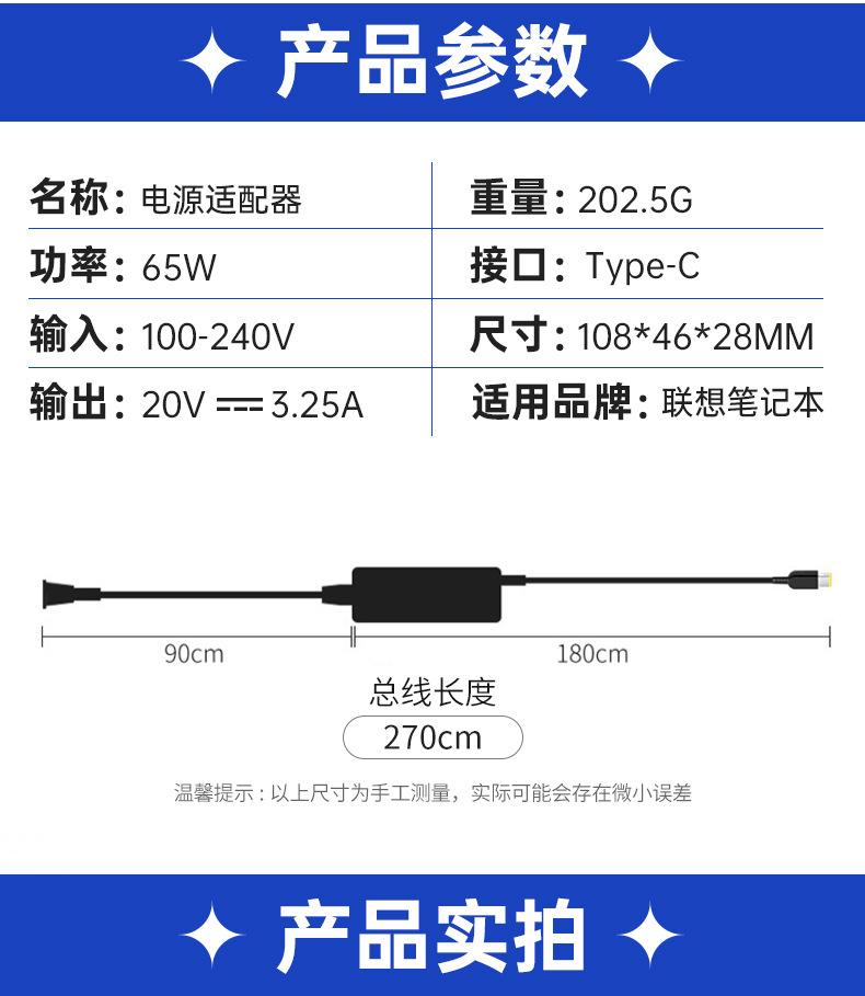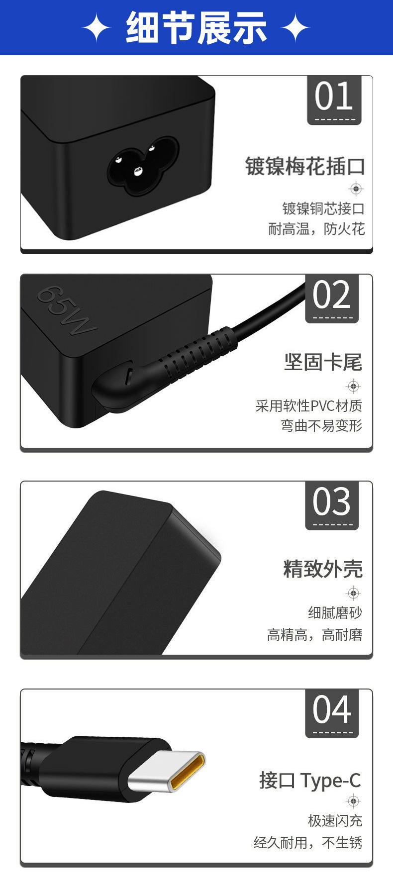 Adecuado para Adaptador de Corriente para Laptop Lenovo 45W65W90W95W 20V3.25A Cargador de Computadora Tipo-C