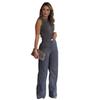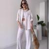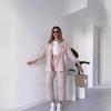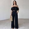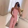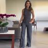 Conjunto de dos piezas de top ajustado con cuello redondo, pantalones a cuadros informales, color sólido, estilo Amazon transfronterizo europeo y americano, novedad de verano de 2024