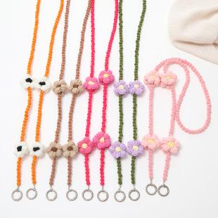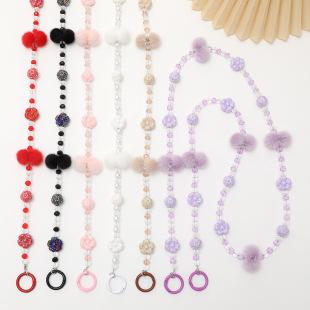 | Nueva funda para teléfono móvil de invierno con cuentas de felpa cruzadas, gancho para cordón, bolso de flores de lana, correa para el hombro, cadena colgante larga |