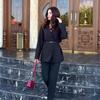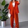 Otoño 2024 Nuevo traje de color sólido transfronterizo de Amazon europeo y americano, elegante conjunto de dos piezas con pantalones de viaje para mujer