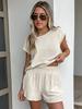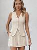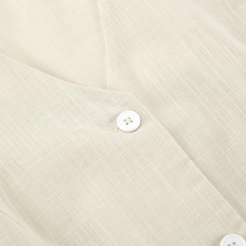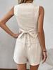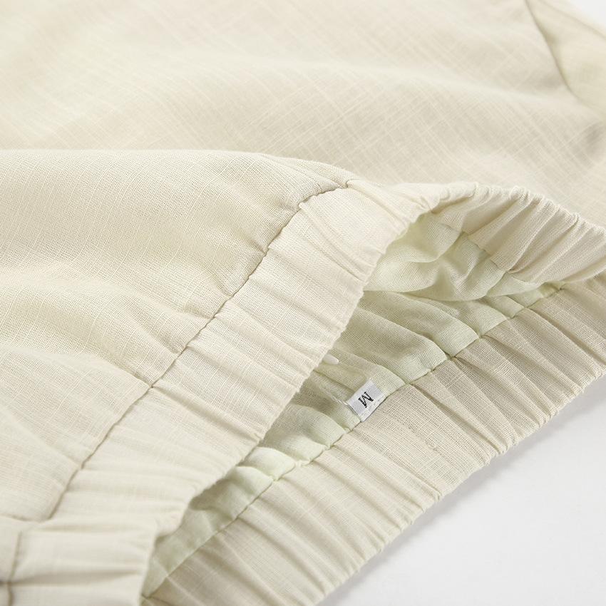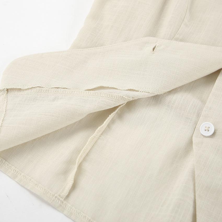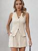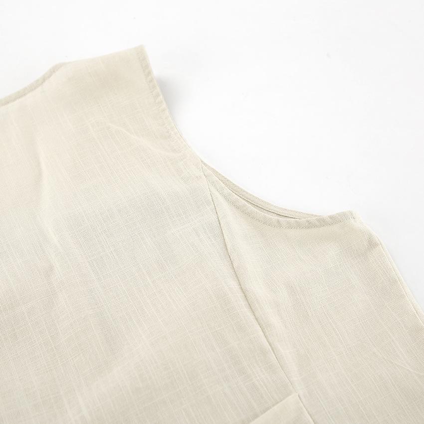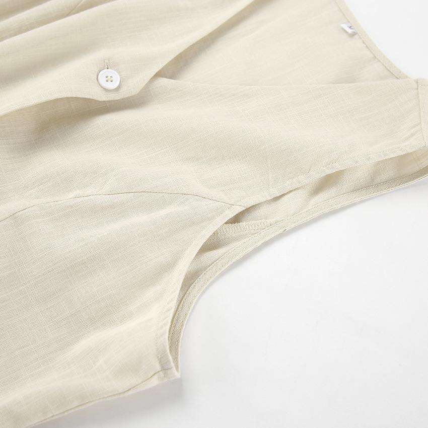 Caqui francés Algodón Lino Cuello en V Sin mangas Chaleco Shorts Traje casual 2025 Verano Europeo y Americano Conjunto de dos piezas