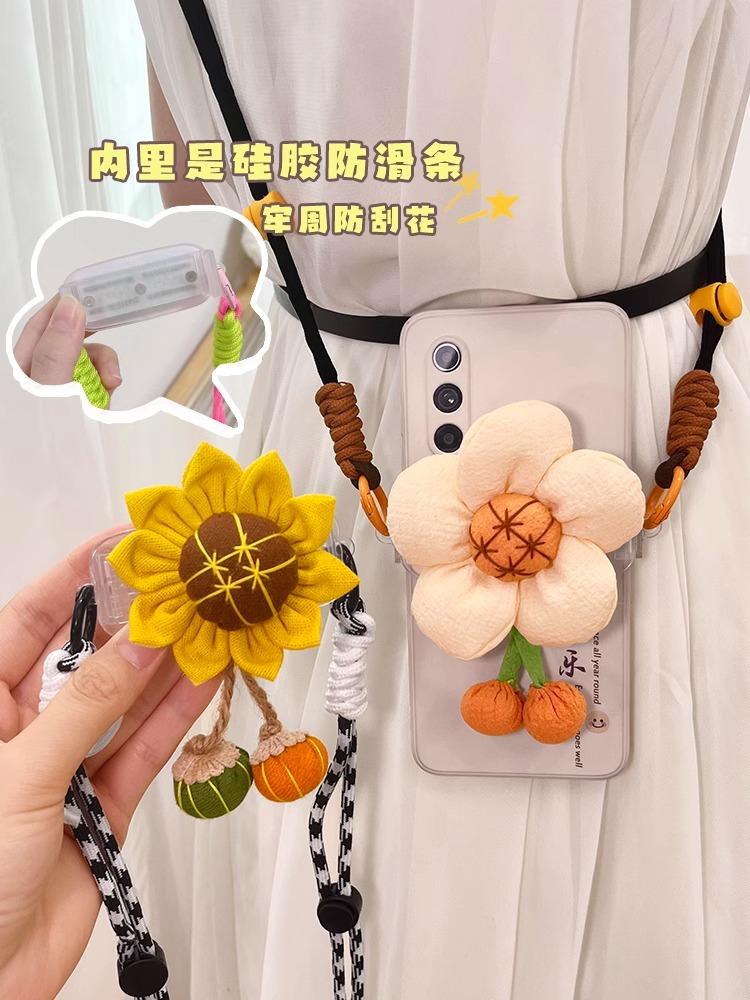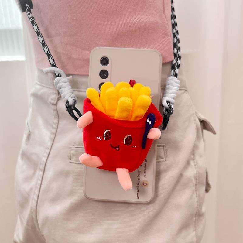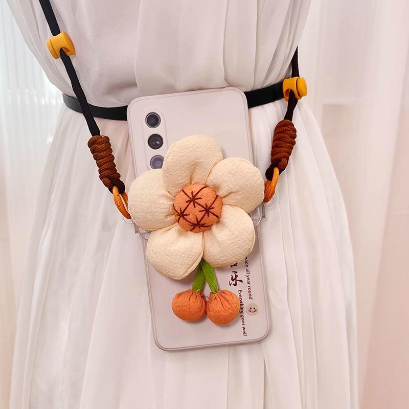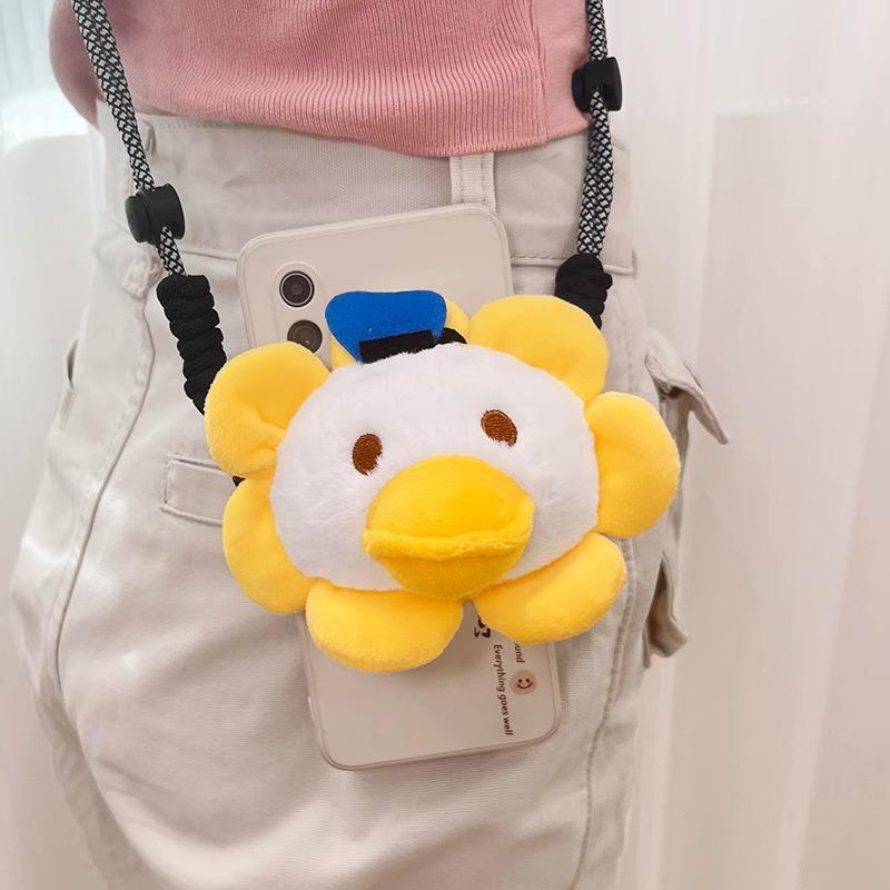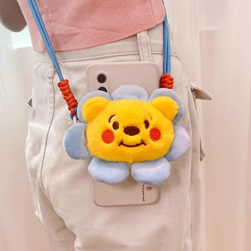 Clip trasero para teléfono móvil, cordón cruzado, bonito colgante de dibujos animados, muñeco de peluche, manos libres, correa antipérdida para teléfono móvil