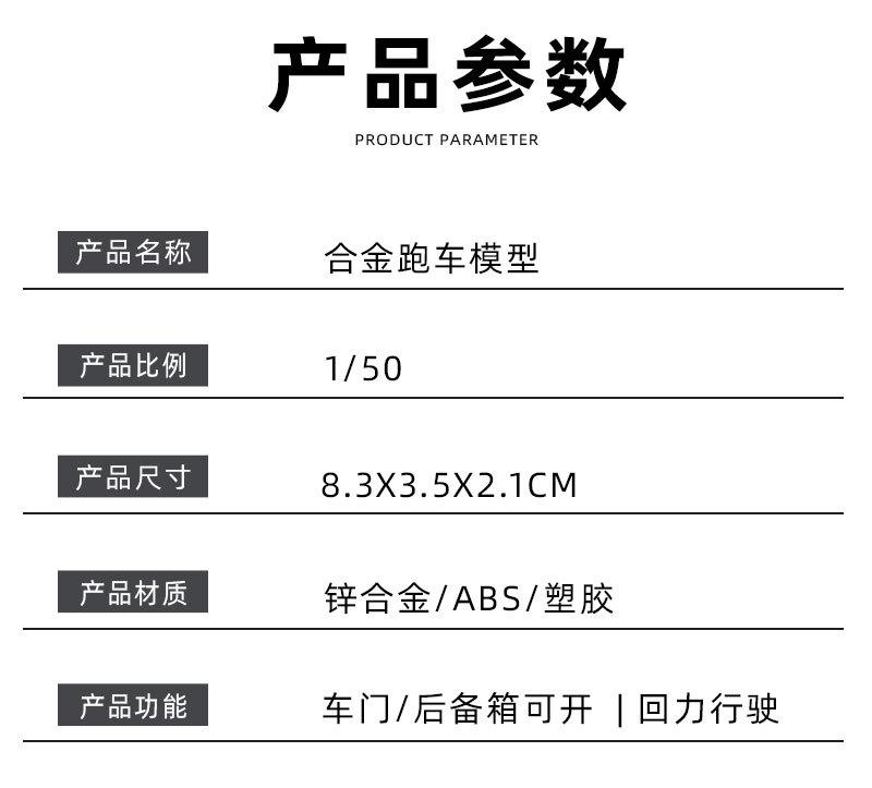 Bolsa 1:50 mini coches deportivos de aleación, modelo de coche de tres puertas, puerta abierta, juguete para niños