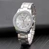 Reloj Caliente Ginebra Tres Ojos Diamante Aleación para Mujer Europeo y Americano Correa de Acero Esfera Joyería Casual al Mayoreo