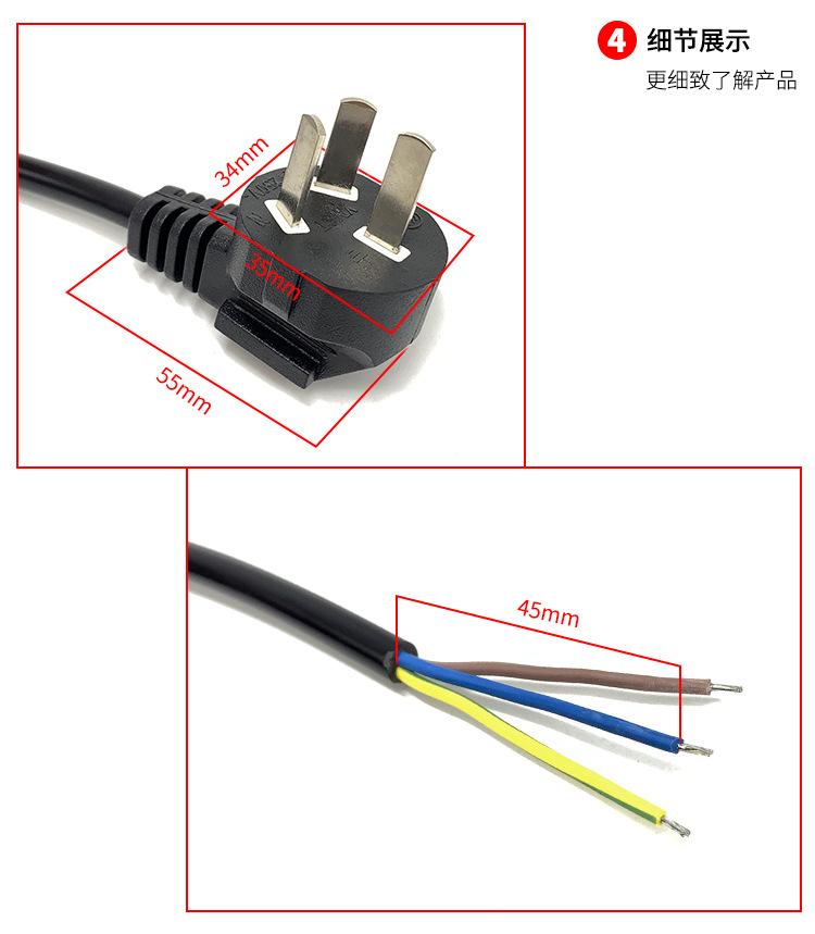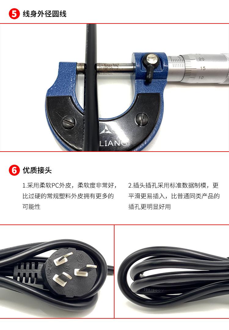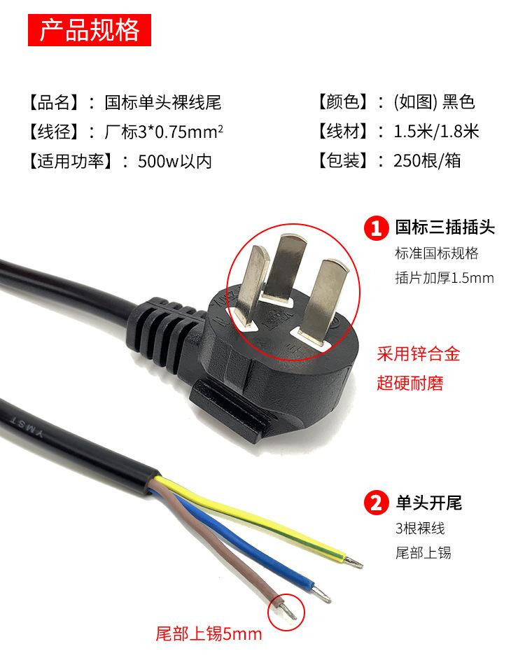 Cable de alimentación estándar nacional de tres núcleos, 3 x 0,75 x 1,8 metros, línea de conexión de tres orificios, línea de extensión, línea de tres enchufes