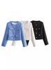 Abrigo Zatrax-2024 Primavera y Otoño Estilo Europeo y Americano para Mujer con Textura y Hombreras de Cuello Redondo