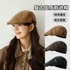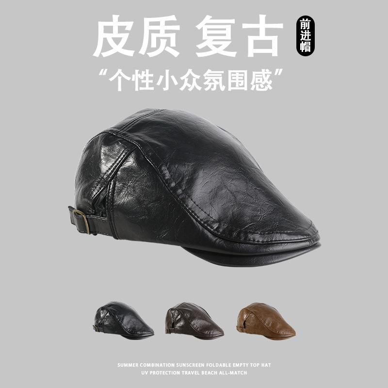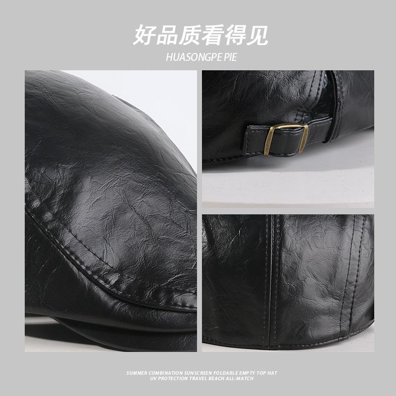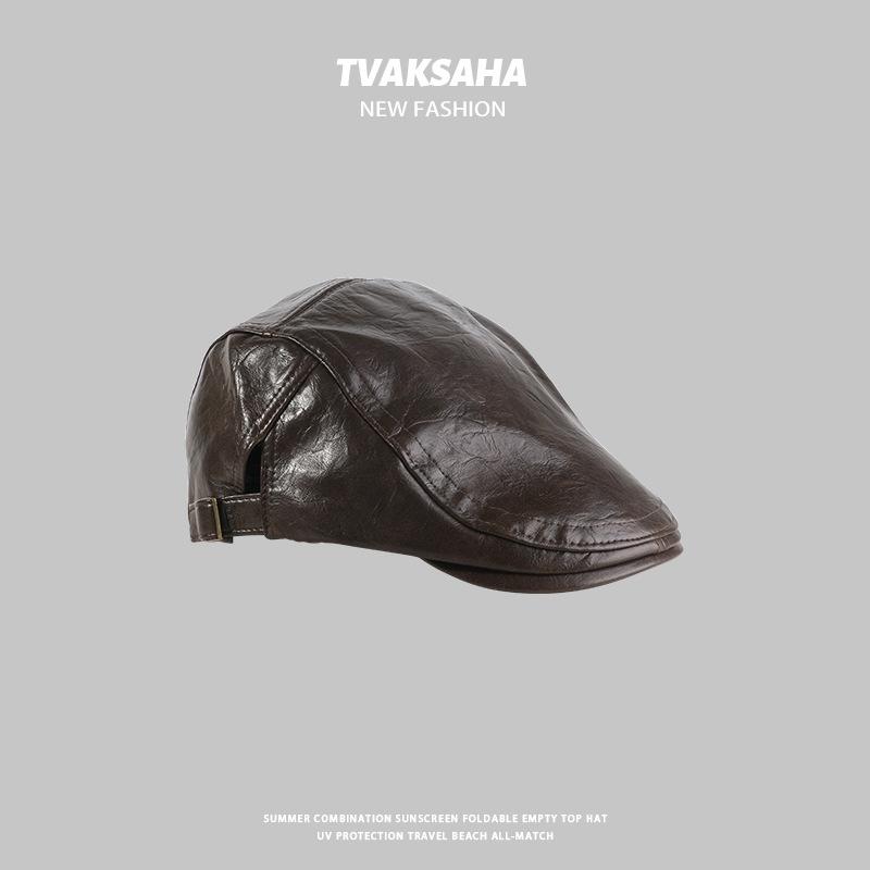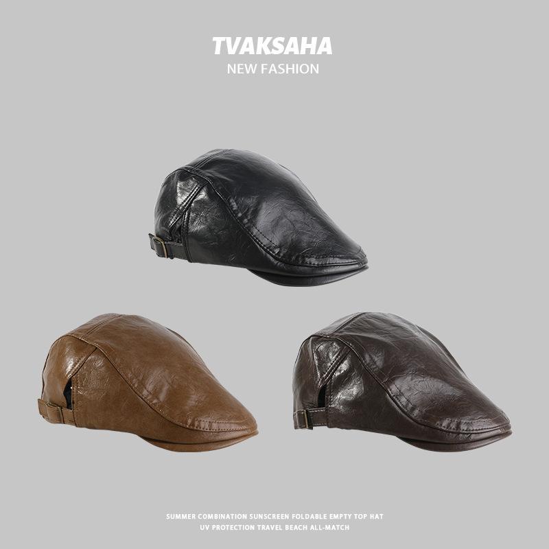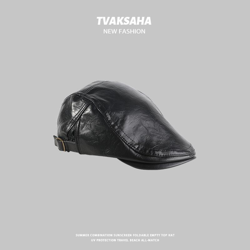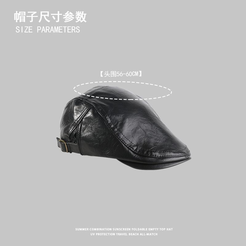 Gorra de Visera de Cuero PU para Mujer, Boina Retro de Color Sólido Simple, Gorra Newsboy de Moda para Hombre
