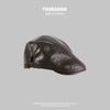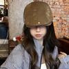C4201 solid color leather copper buckle forward cap coffee