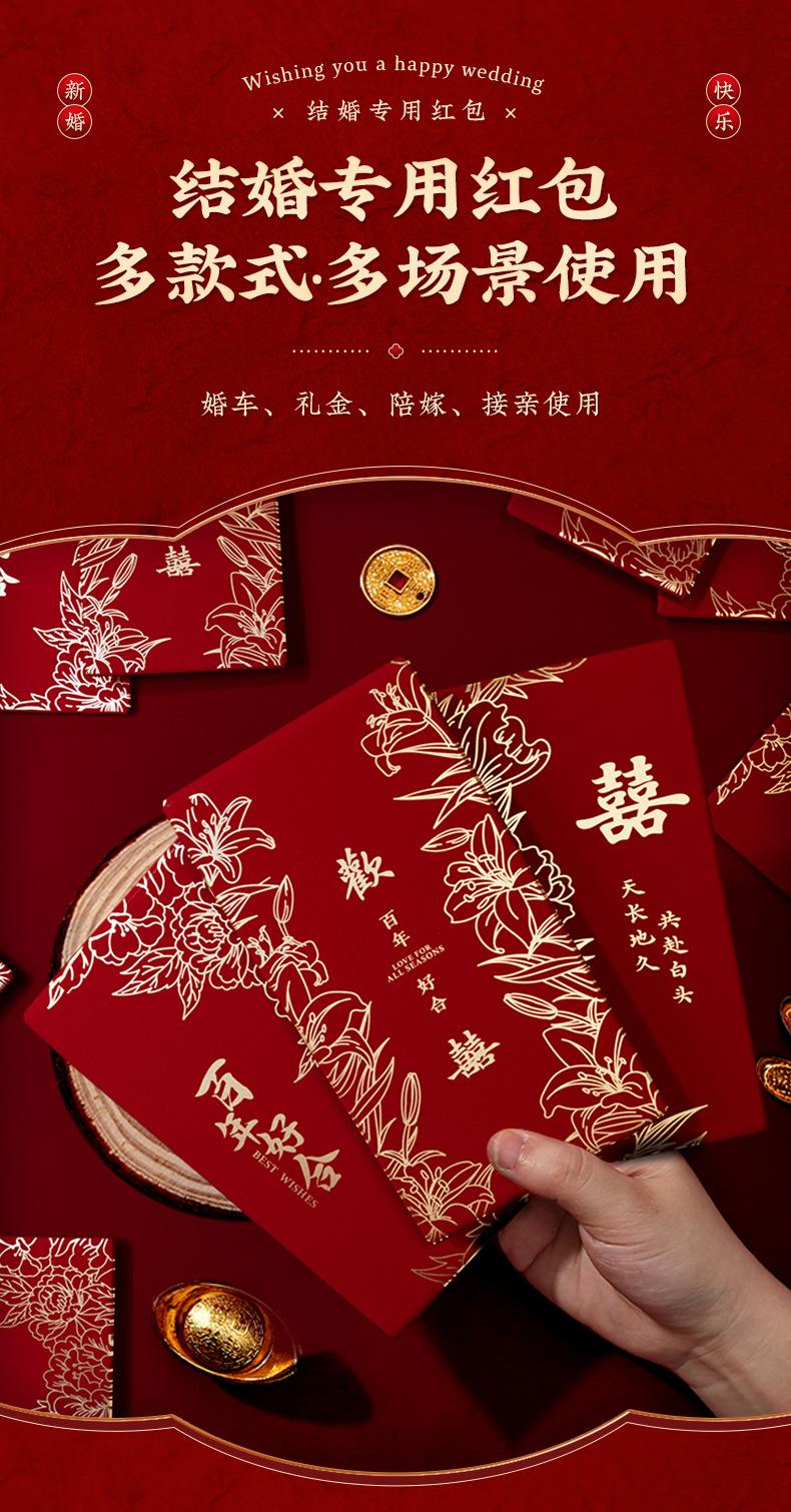 Sobre Rojo de Boda 2025 Nuevo Boda Especial Cambio de Mil Yuan con Regalo de Retorno Parcial Bolsa de Boda Personalidad Bloqueando Puerta Li es un Sello