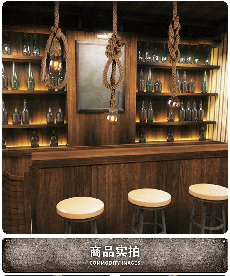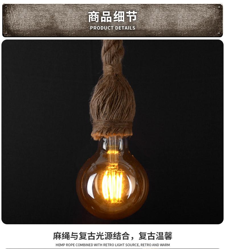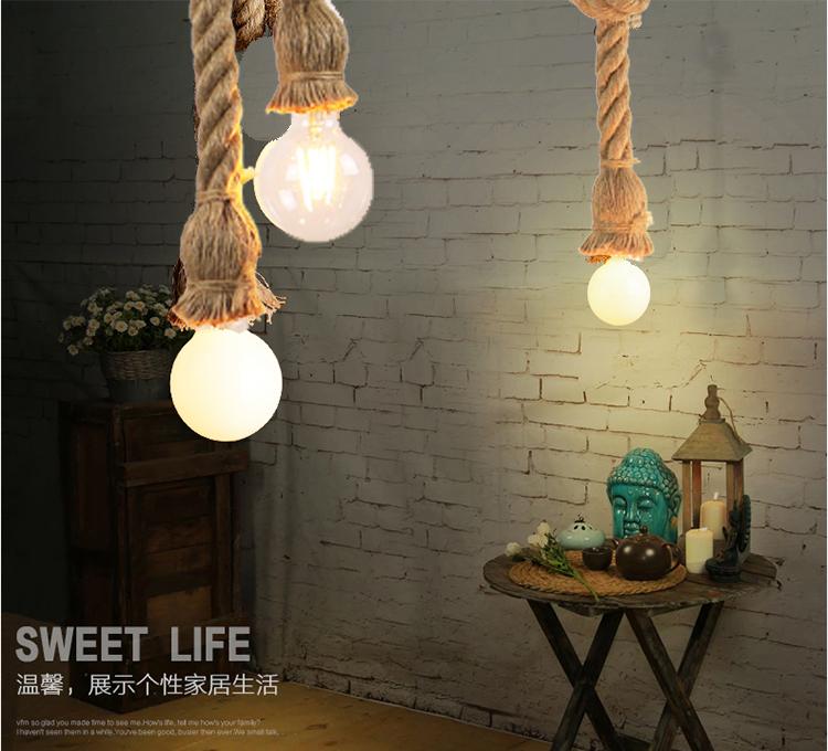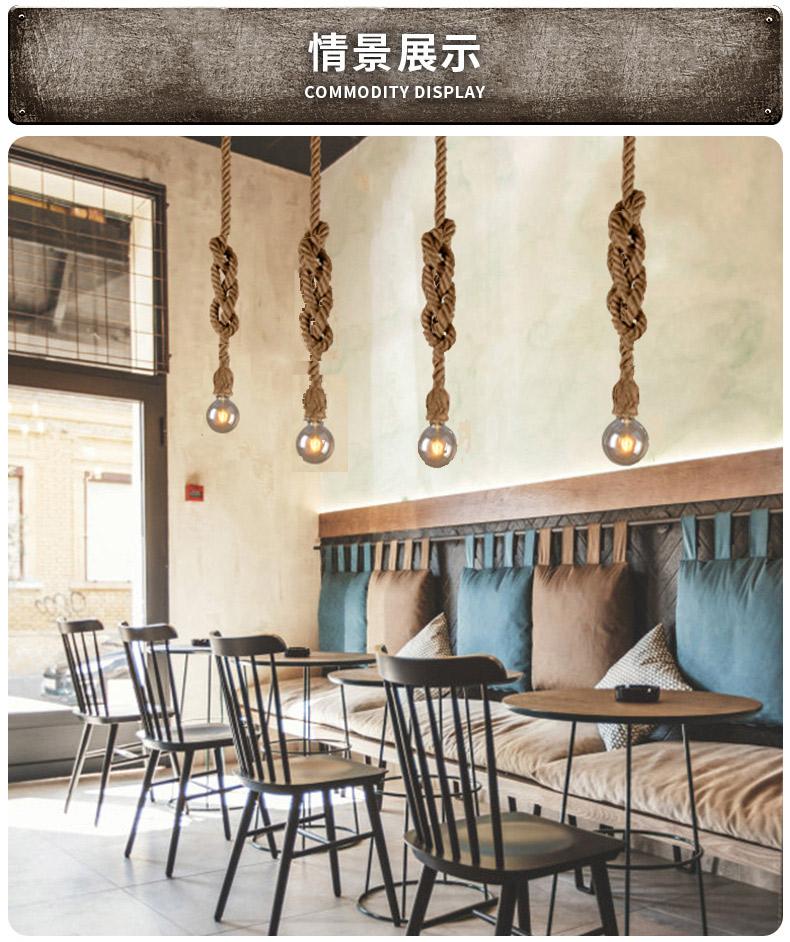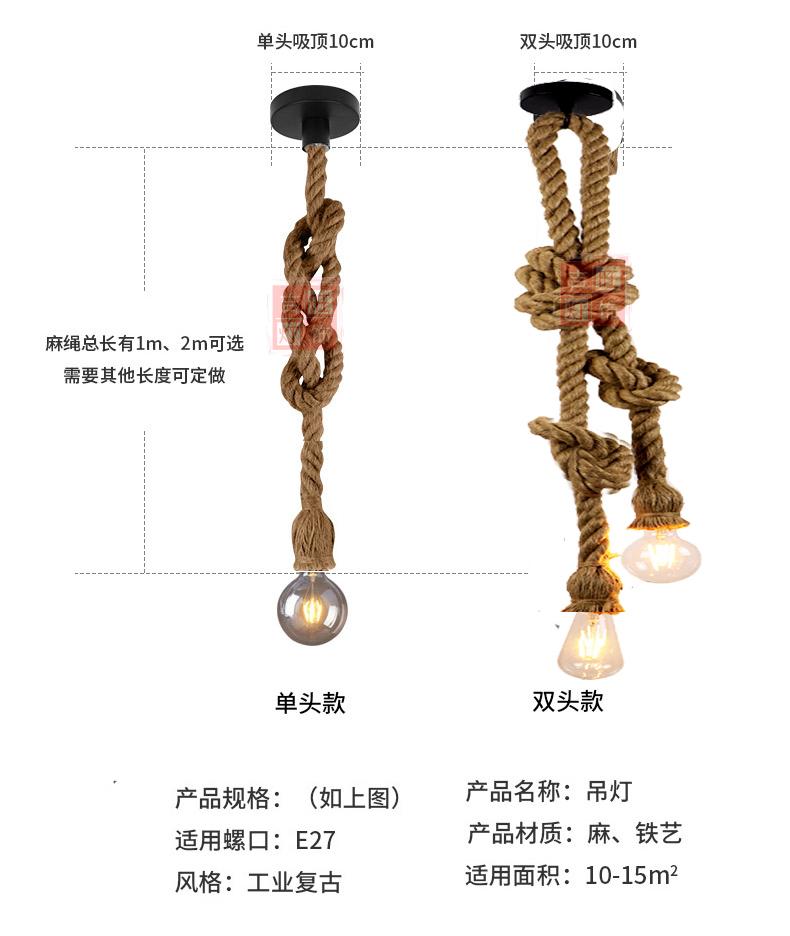 Lámpara de araña de cuerda de cáñamo individual para bar, loft, tienda de ropa, restaurante, cibercafé, lámpara de viento industrial decorativa creativa personalizada