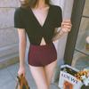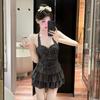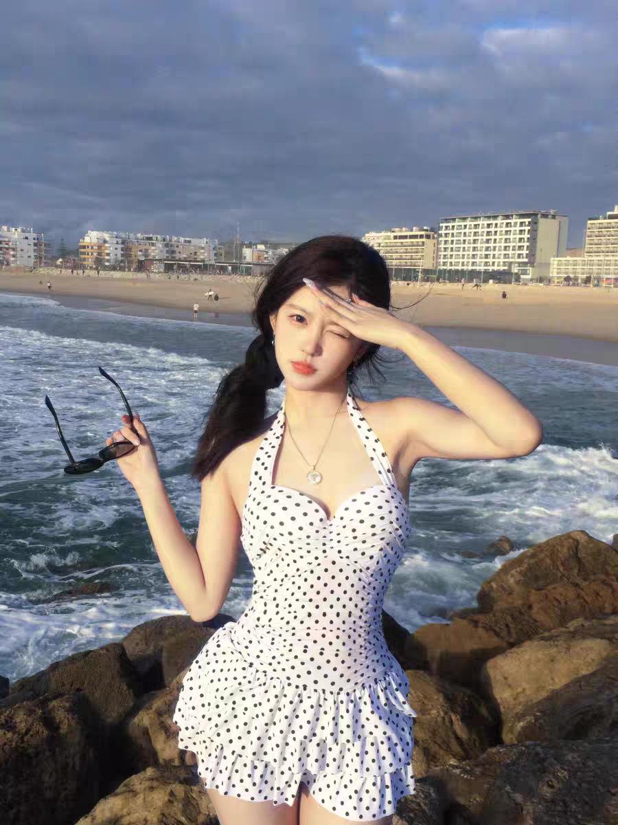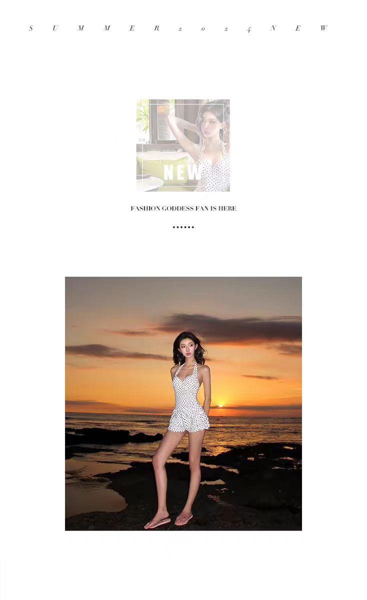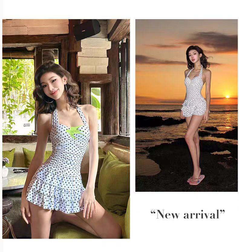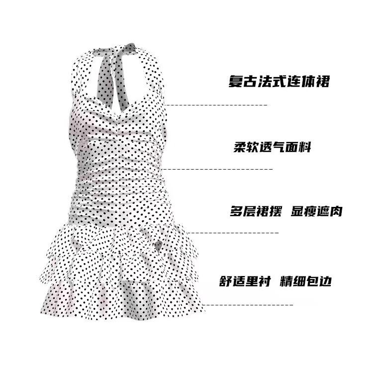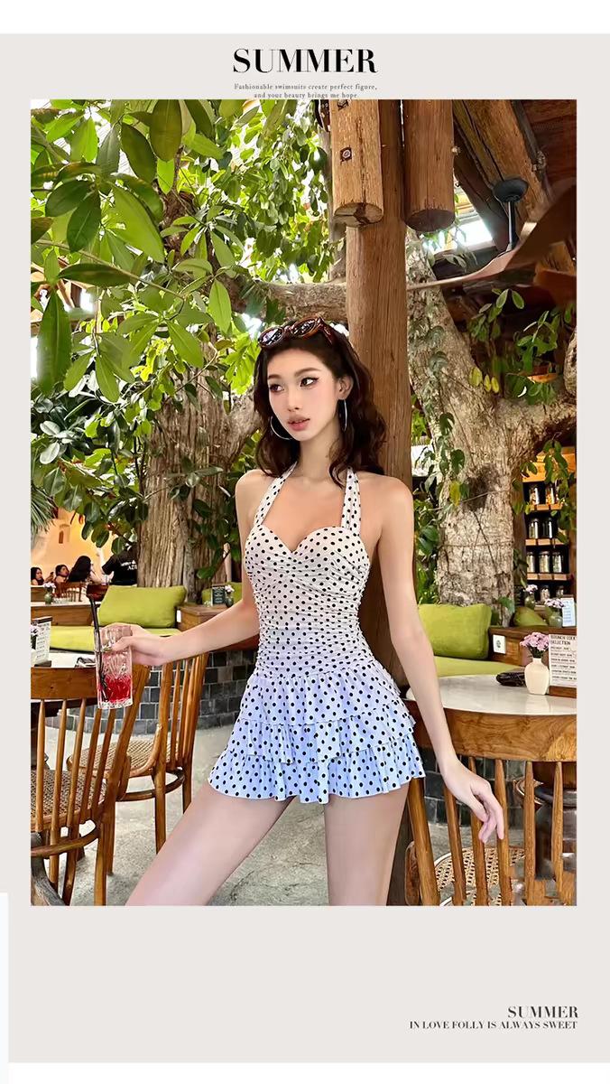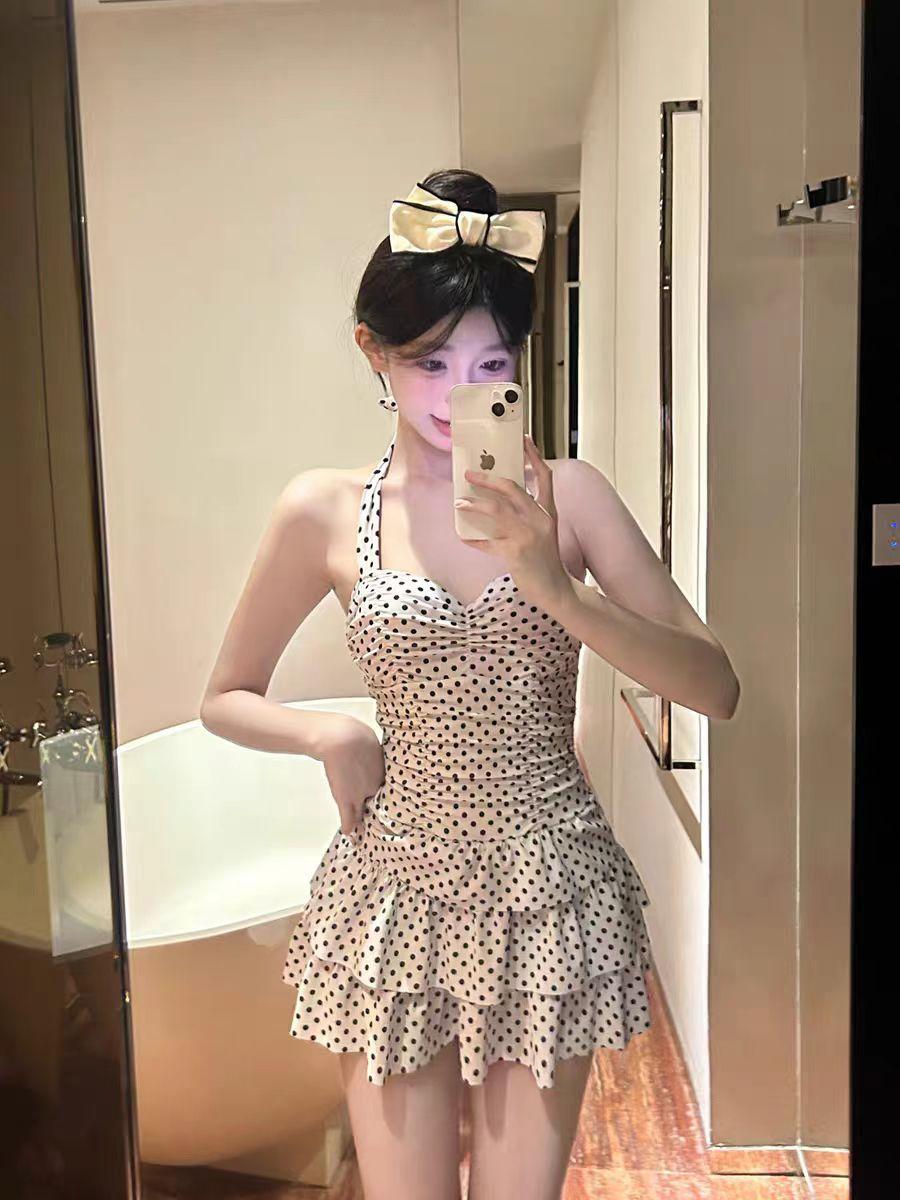 Traje de baño de una pieza para mujer retro de lunares de onda sin espalda bonito dulce falda conservador adelgazante cubre vientre traje de baño para aguas termales al por mayor