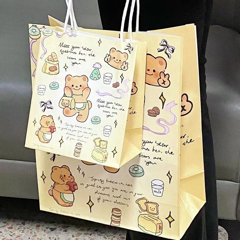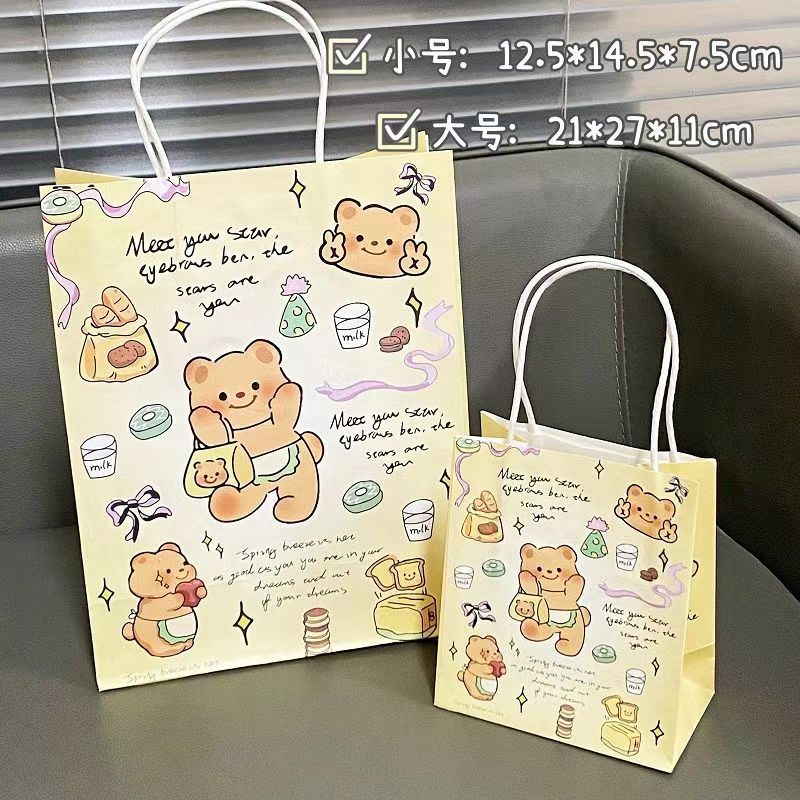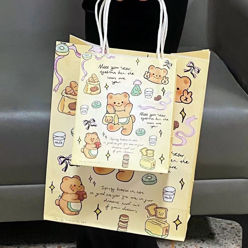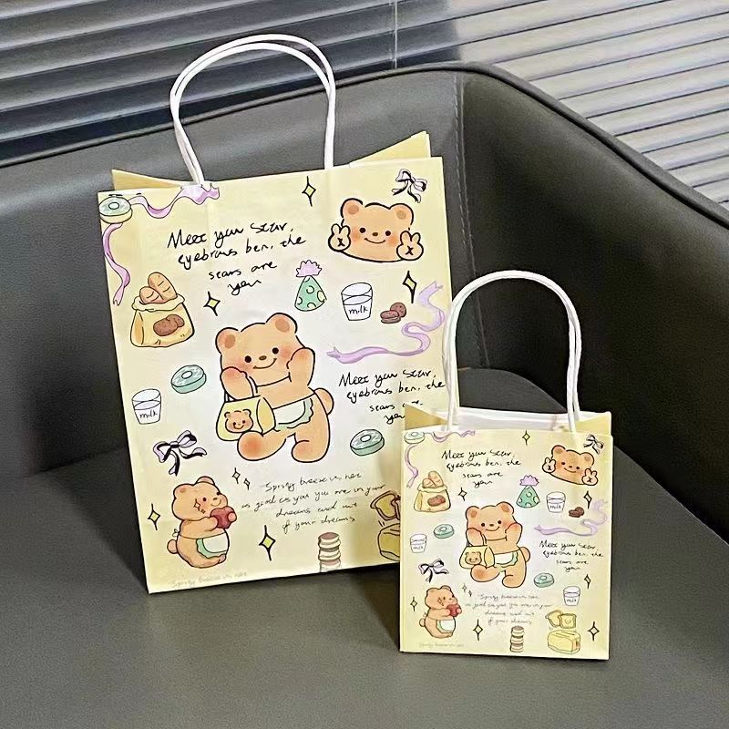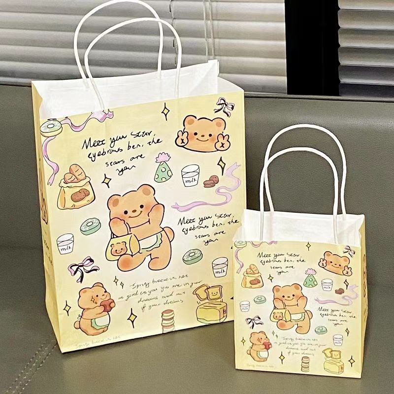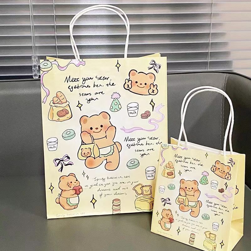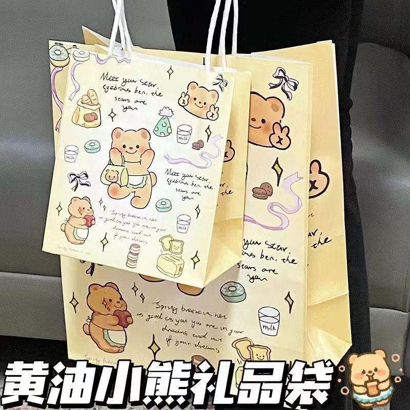 Bolsa de regalo con diseño de oso de mantequilla, portátil, gruesa, con dibujos animados, para regalo de cumpleaños, para compras, de gran capacidad