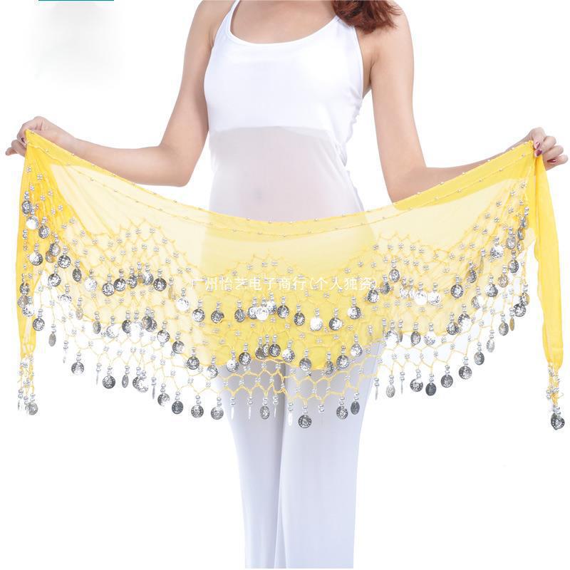 En stock 128 monedas de tres capas cadena de cintura para danza del vientre toalla de cintura ordinaria playa para ancianos 1 joyería accesorios de ropa cintura