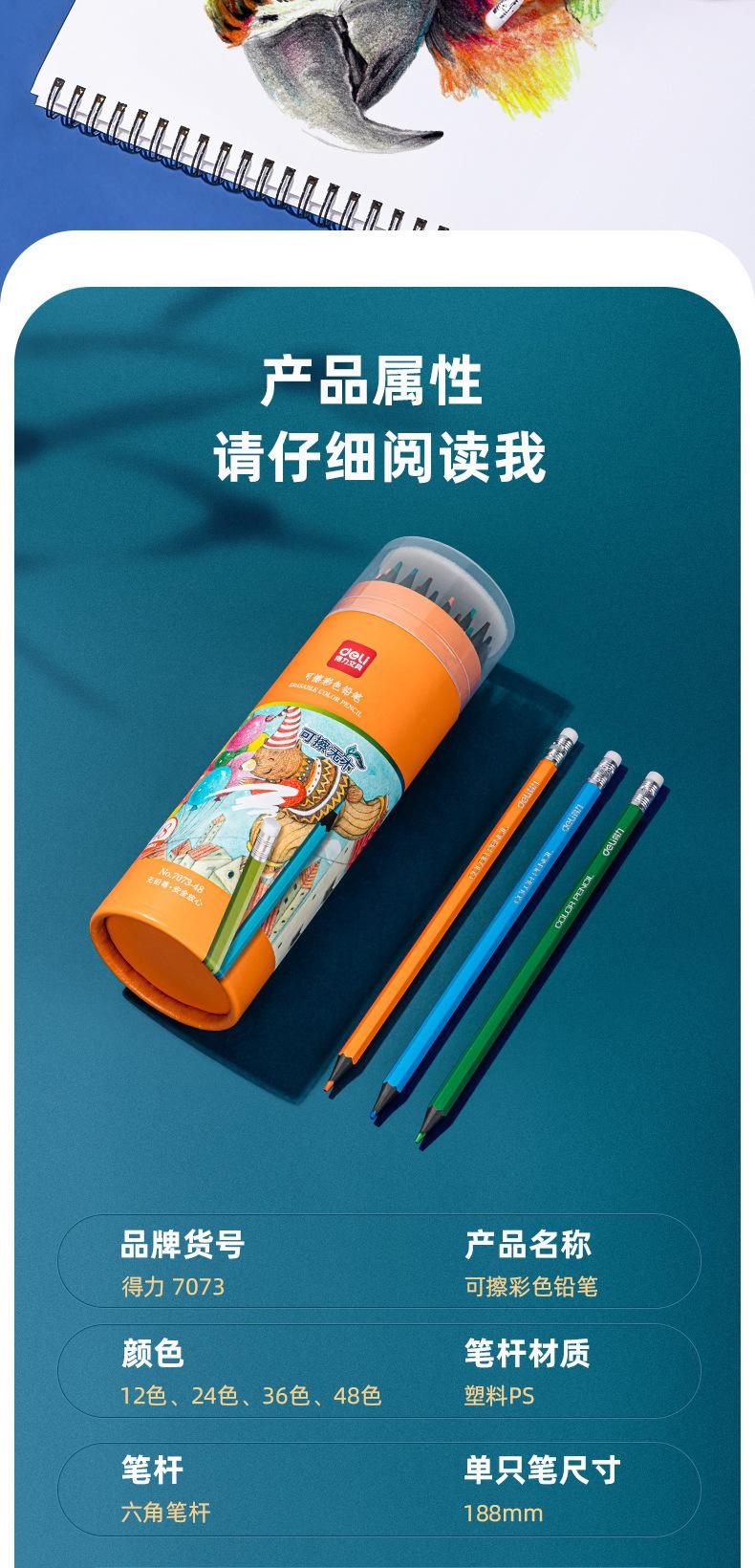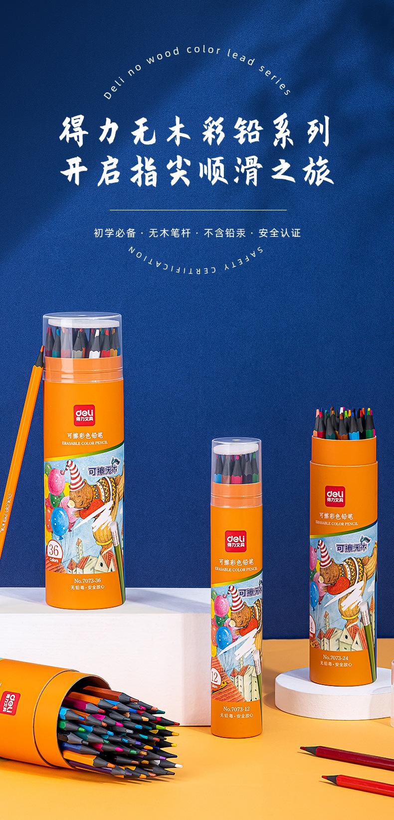 Lápiz de color borrable Deli 7073 para estudiantes, mina de color, graso, 36 colores, 24 colores, 12 colores, pincel para bocetos pintado a mano
