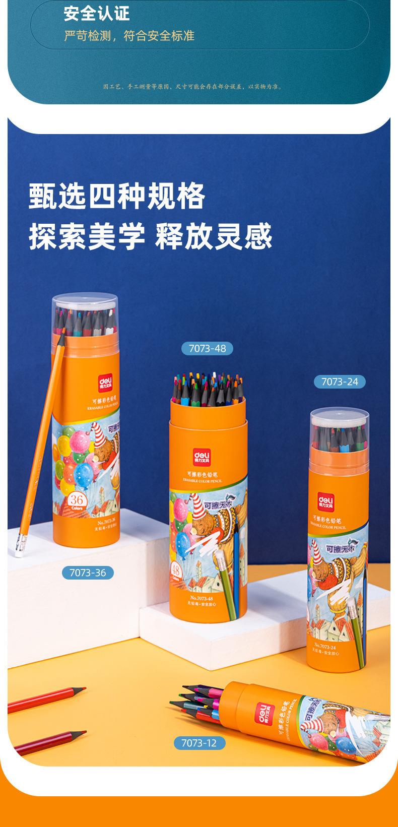 Lápiz de color borrable Deli 7073 24 colores pintado a mano adulto niños jardín de infancia pintura 48 colores estudiantes con punta de goma de borrar