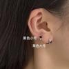 Pendientes de plata s925 con circonita blanca y negra, elegantes, sencillos, combinables, con un toque de dulce y fresco viento, con forma de hueso para la oreja, exquisitos pendientes pequeños con hebilla para mujer.