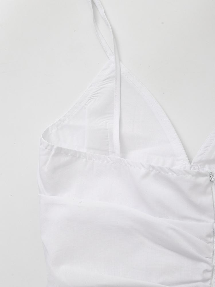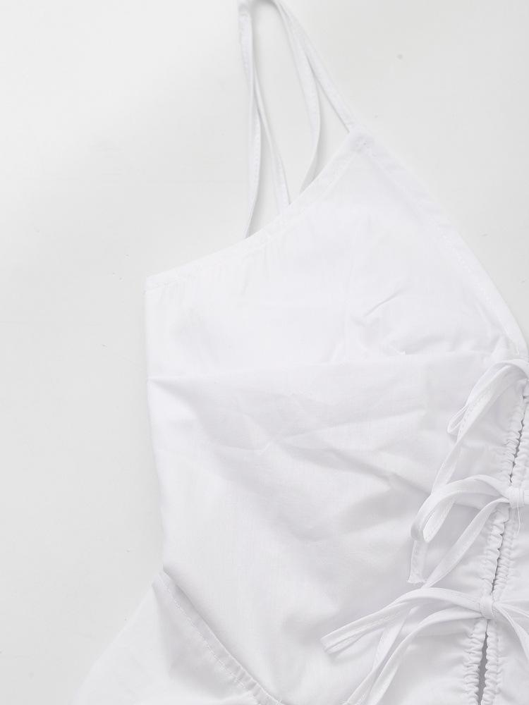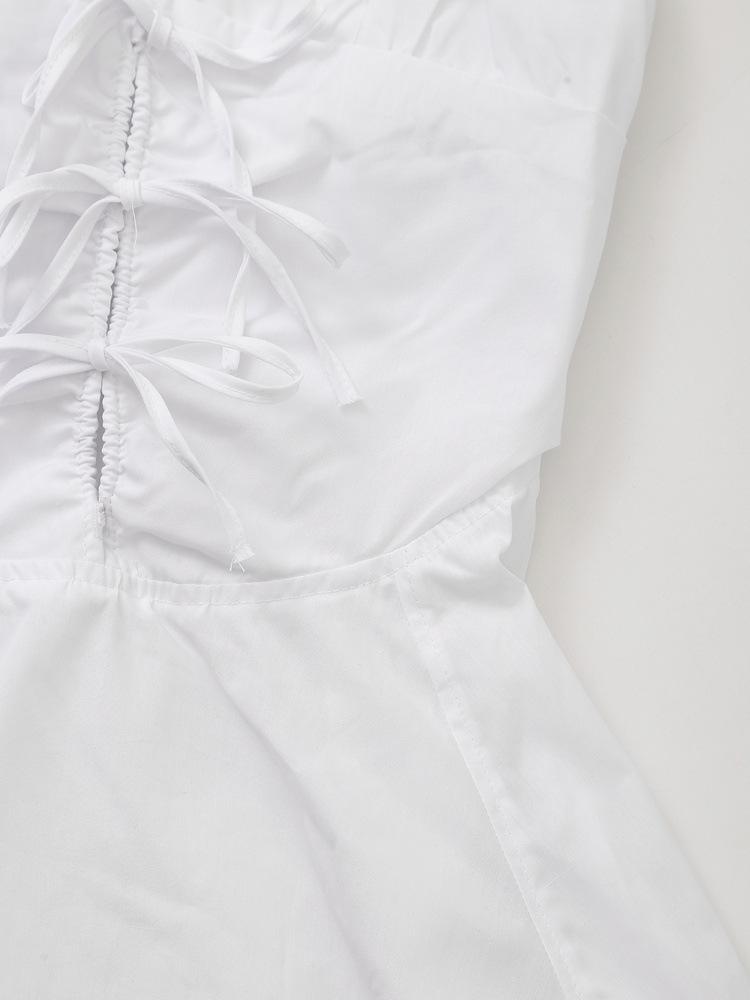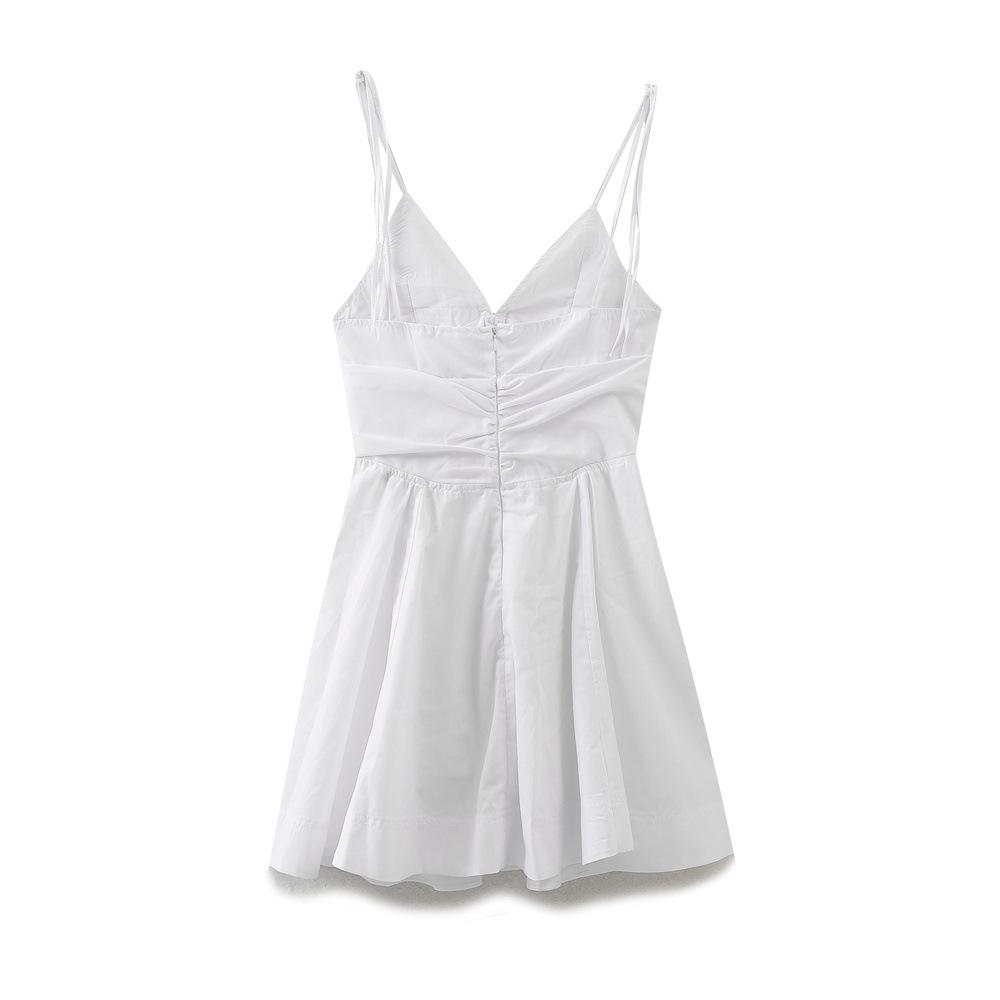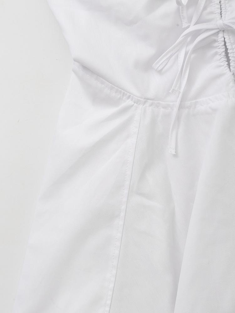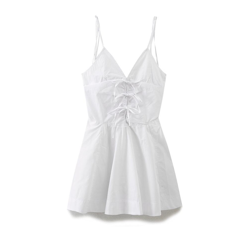 Nuevo Verano 2024 Vestido Corto Blanco con Cuello en V, Cintura Ajustada y Lazo para Mujer, Minivestido de Algodón