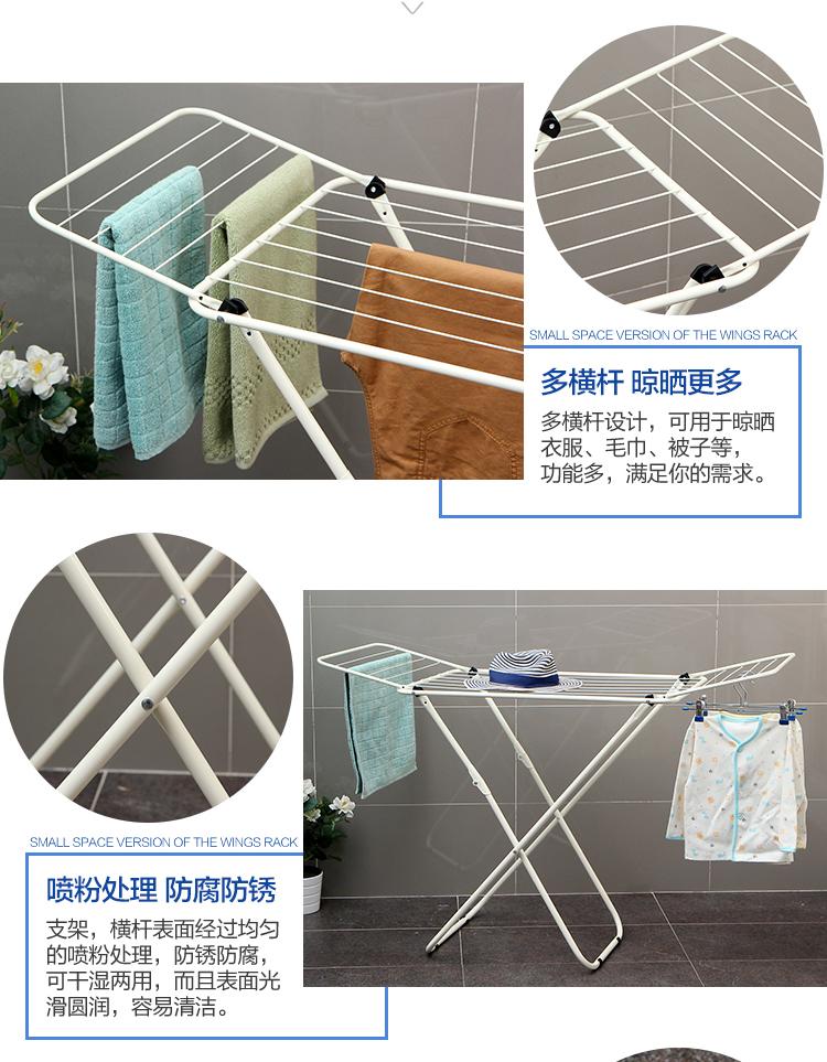 Perchero plegable de pie para interior y balcón, con forma de ala, sencillo, para el hogar, para secar toallas y colchas, para exteriores