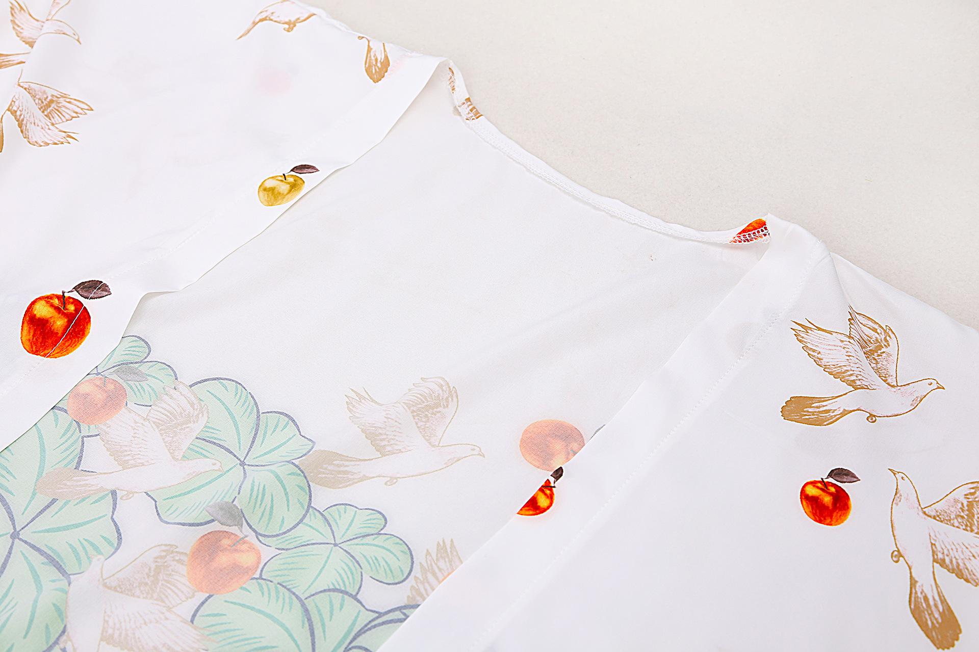 Traje de baño tipo cárdigan largo con estampado de poliéster y protección solar de estilo europeo y americano con blusa de bikini, abrigo de playa para vacaciones para mujer