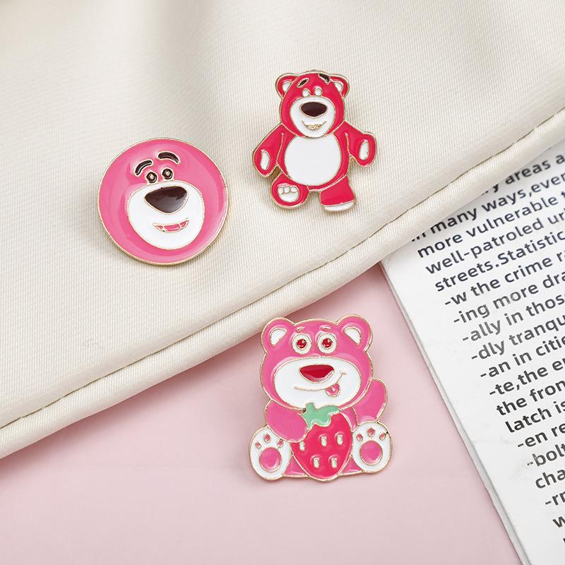 Broche de aleación con forma de gota de agua de joyería de dibujos animados japoneses y coreanos, pequeño y feroz dinosaurio, oso de fresa, bolso, estuche para lápices, accesorios de ropa