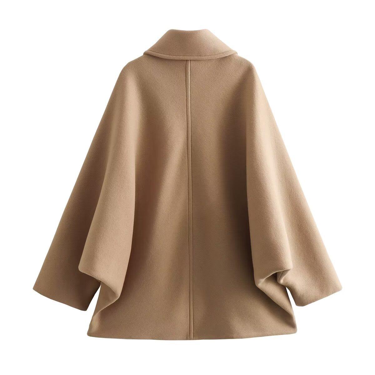 Chaqueta de abrigo de manga murciélago con solapa suelta y longitud media para mujer, estilo europeo y americano, Zatrax-2024