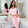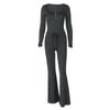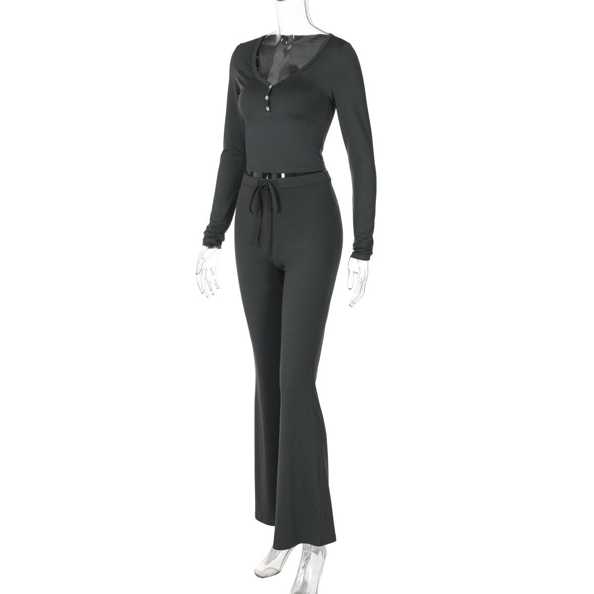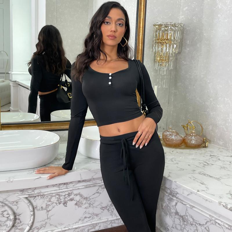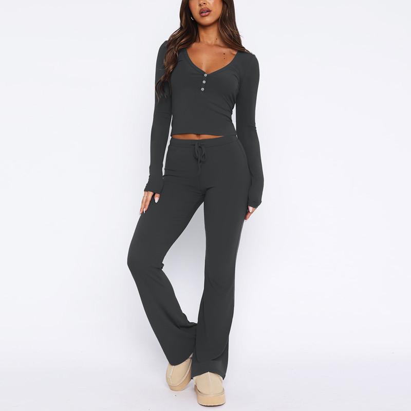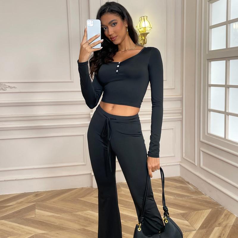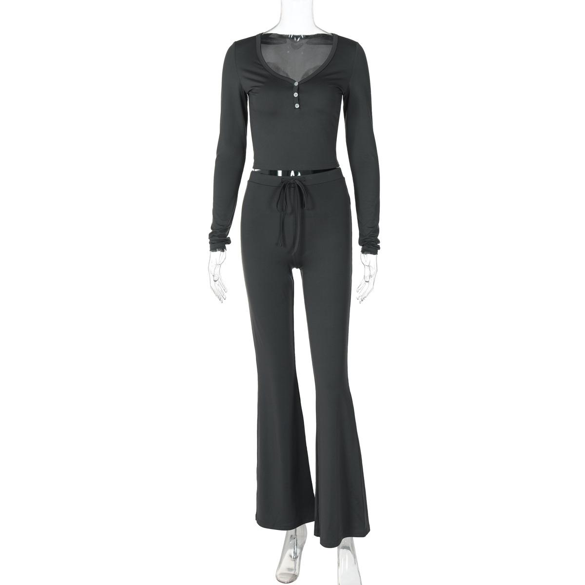 Amazon Ropa Europea y Americana 2025 Primavera Nuevo Color Sólido Manga Larga Moda Pantalón con Cordón Traje de Dos Piezas para Mujer Venta al por Mayor