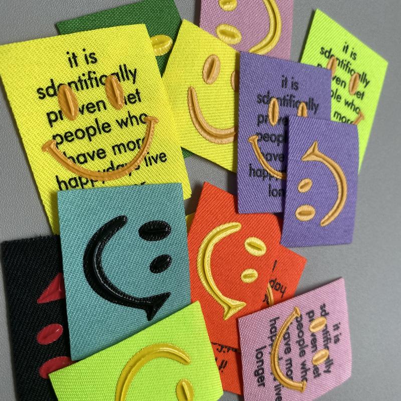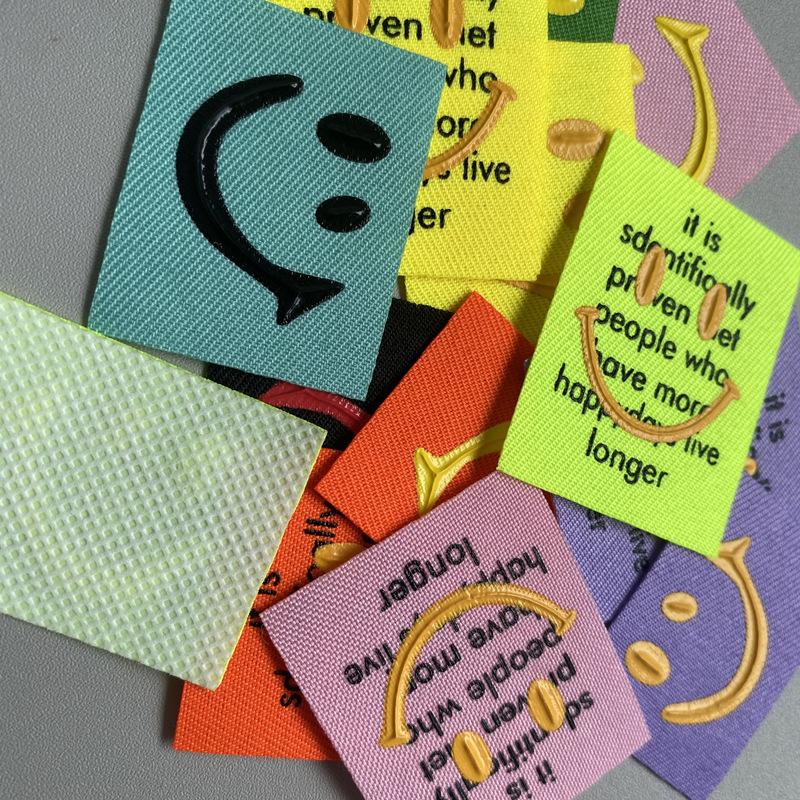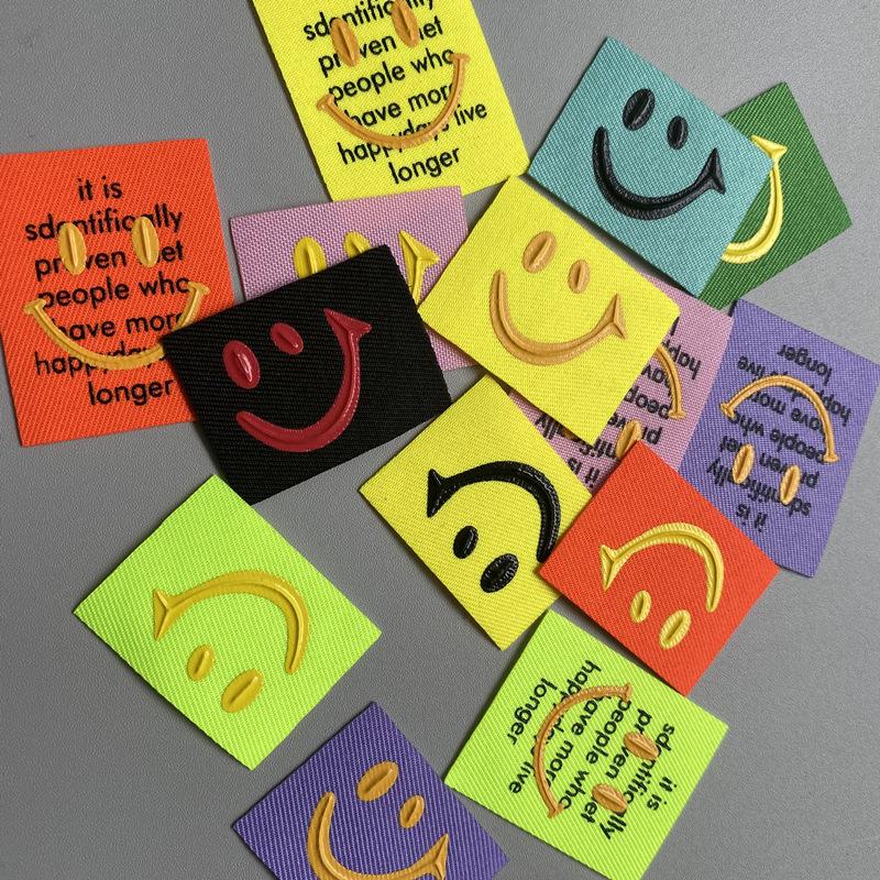Nuevo parche de tela con estampado de patrón de carita sonriente de impresión offset tridimensional, etiqueta de tela, caja de ropa, calcetines, pegatinas de tela decorativas DIY