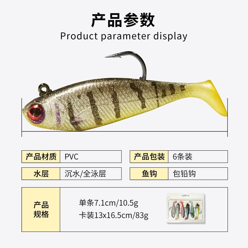 Cebo biónico Luya al por mayor, 7 cm, 10,5 g, anzuelo simple, plomo, pez, nuevo, cola en T, plomo, pez, capa de natación completa, cebo falso