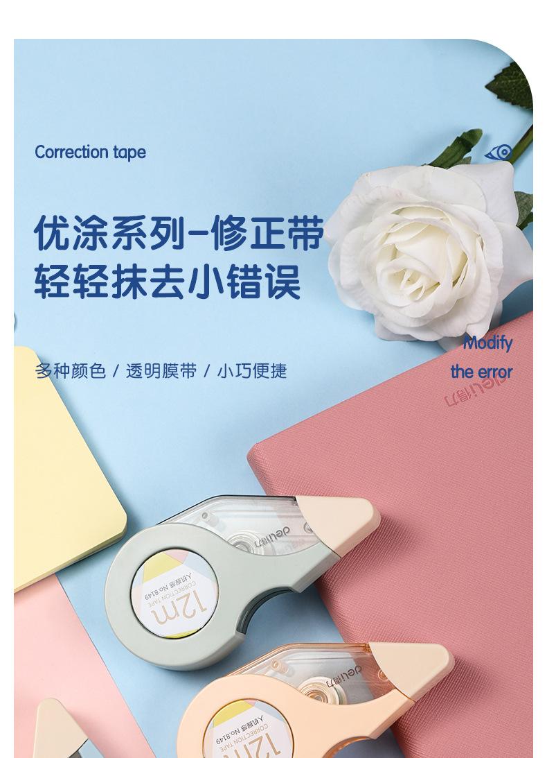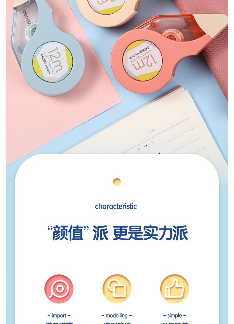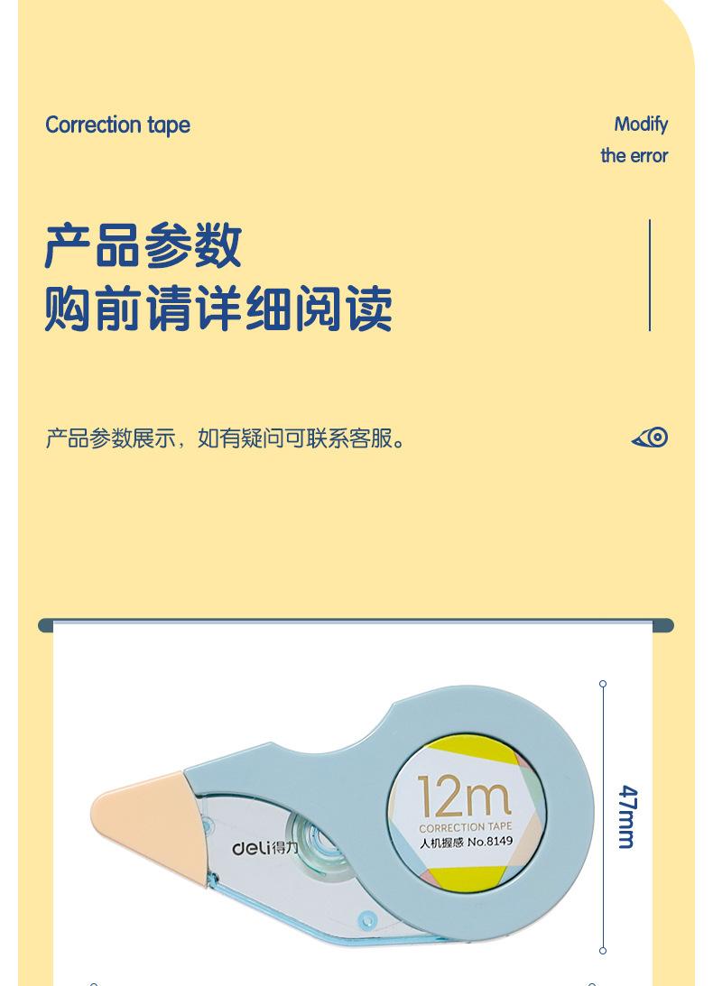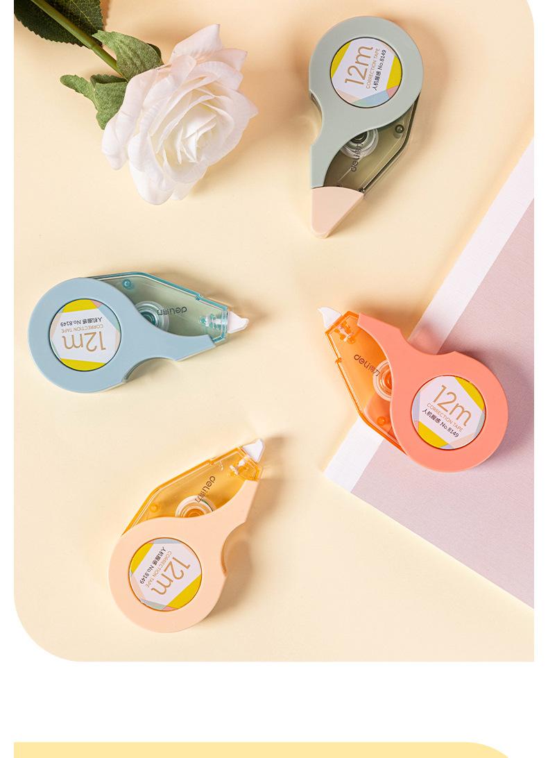 Cinta correctora Deli Stationery 8149 de 12 m, cinta correctora, cinta correctora sencilla, de alto valor de color, cinta de película importada para estudiantes