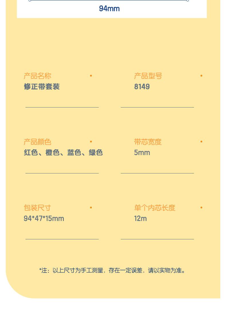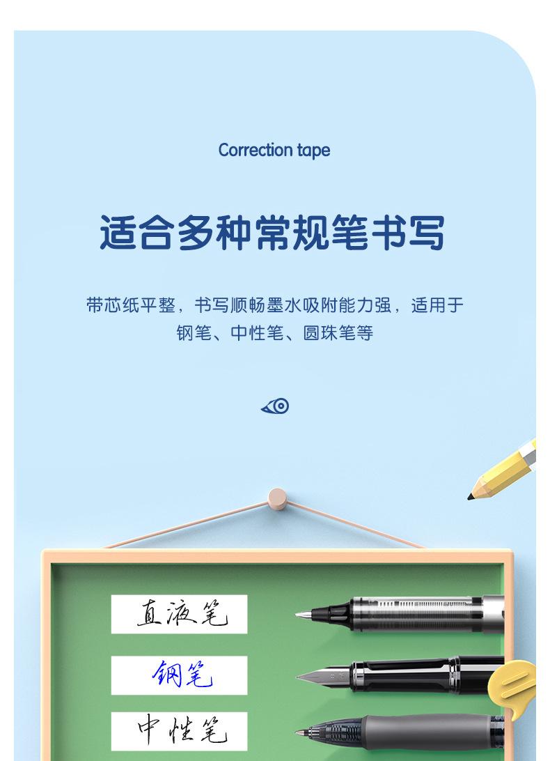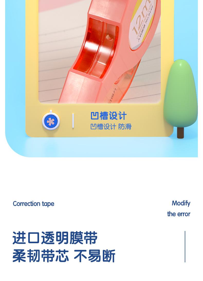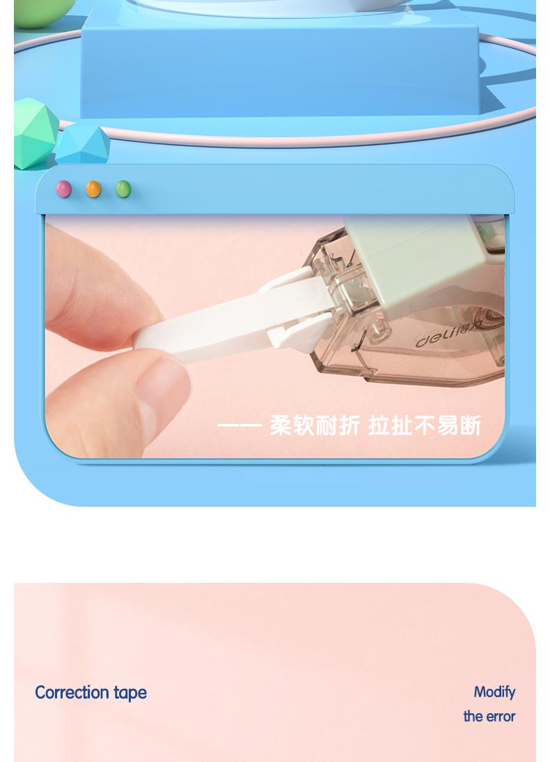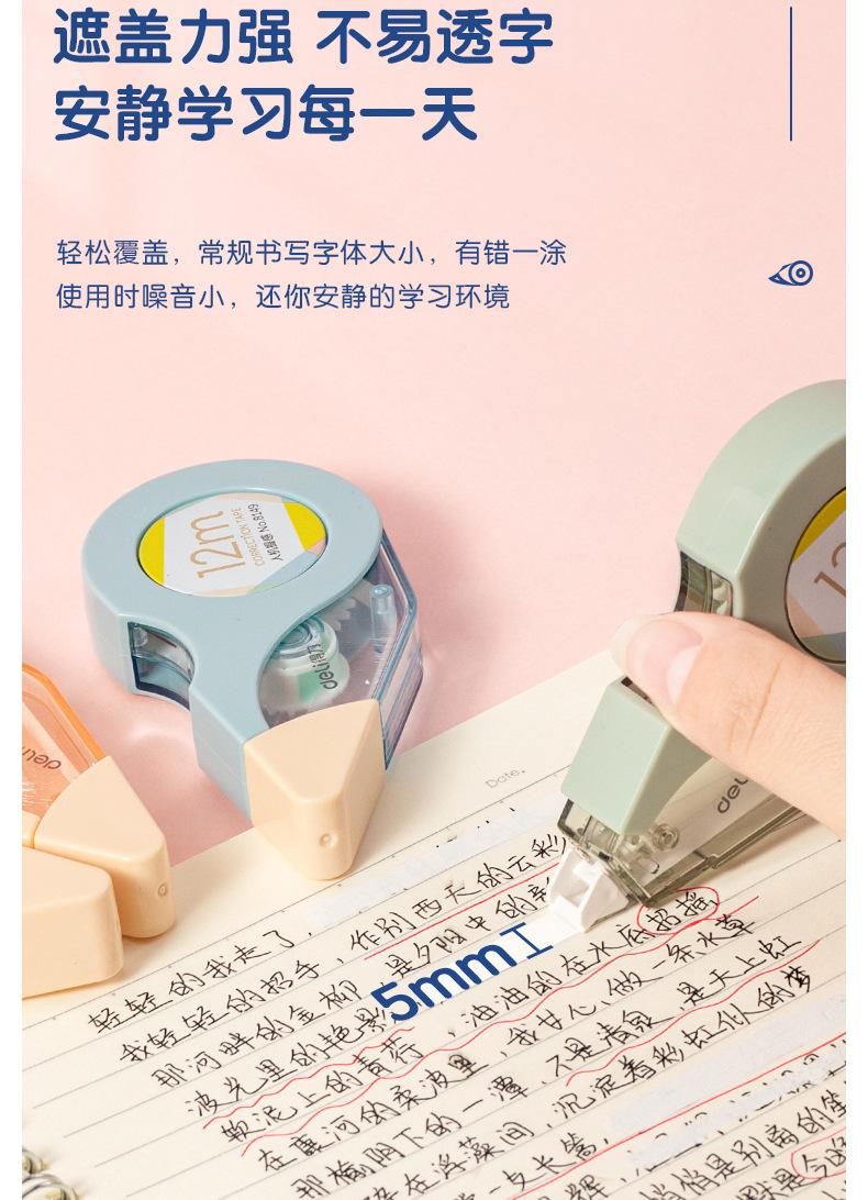 Cinta correctora Deli Stationery 8149 de 12 m, cinta correctora, cinta correctora sencilla, de alto valor de color, cinta de película importada para estudiantes