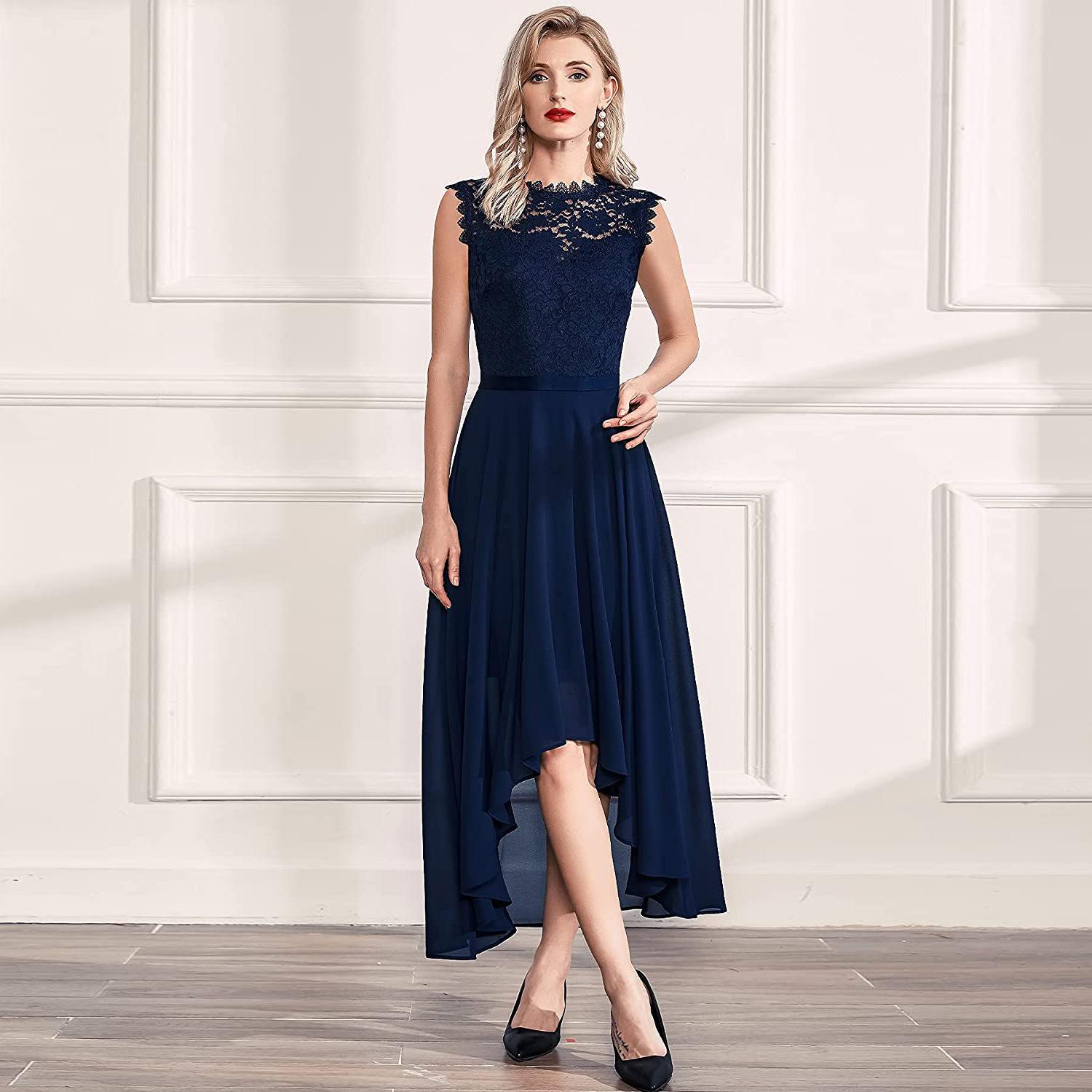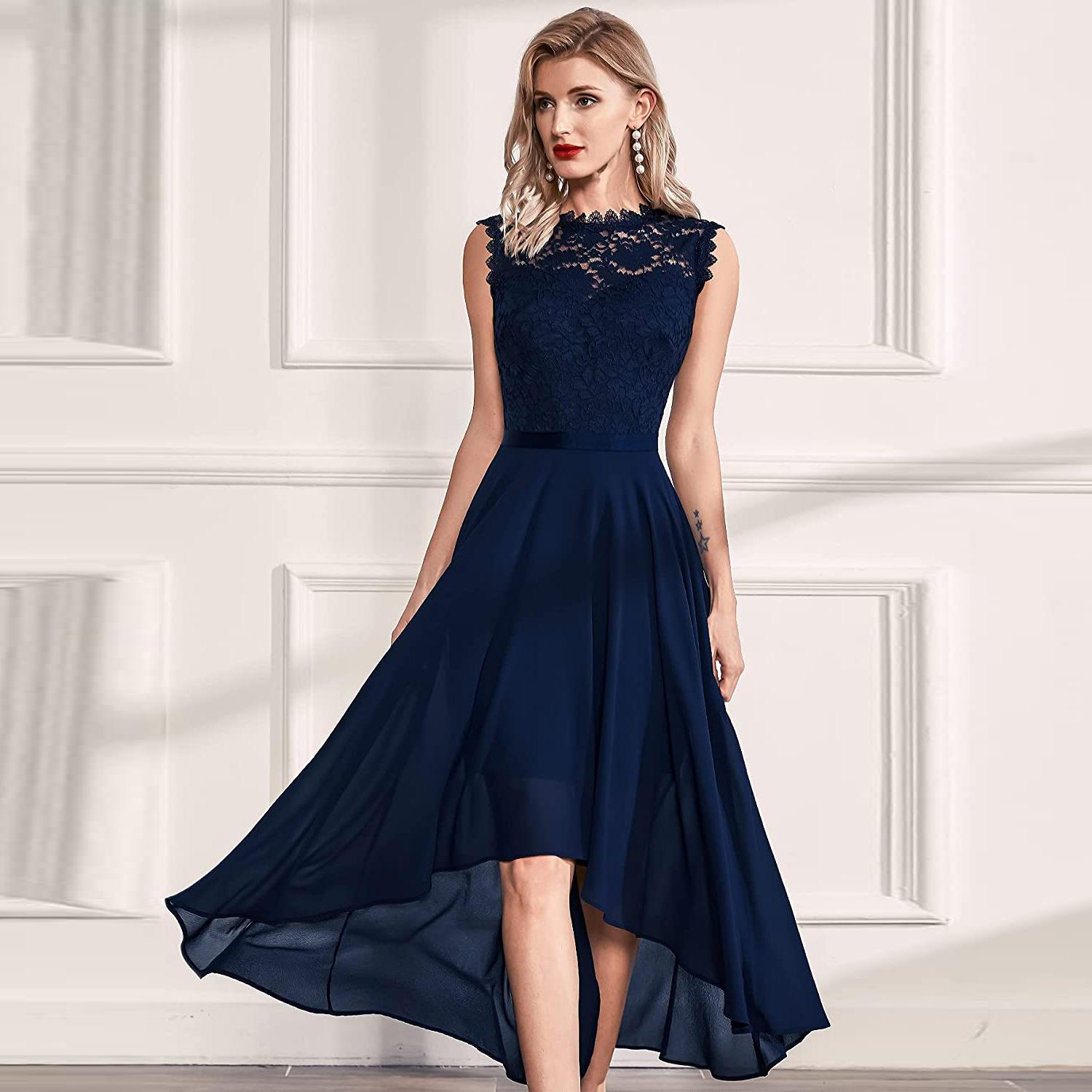 Europeo y Americano 2025 Primavera y Verano Nuevo Amazon Exportación Transfronteriza Vestido de Gasa con Recorte en la Cintura Vestido de Encaje para Cena