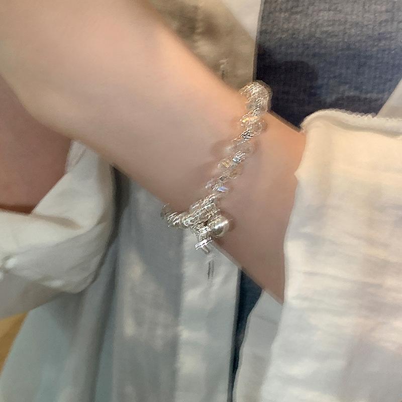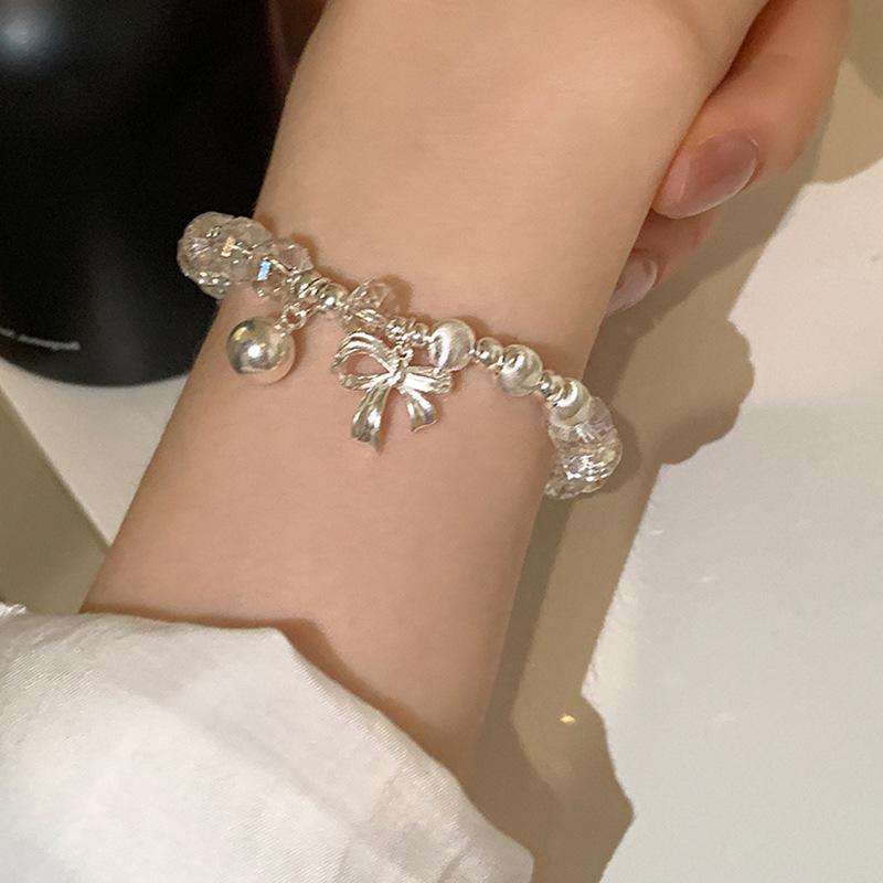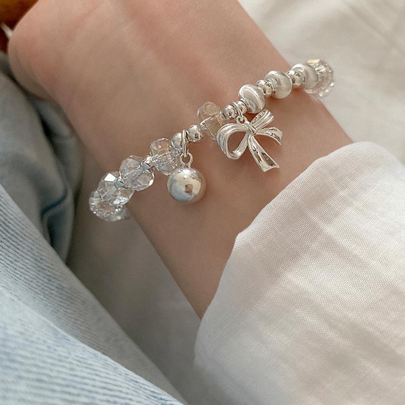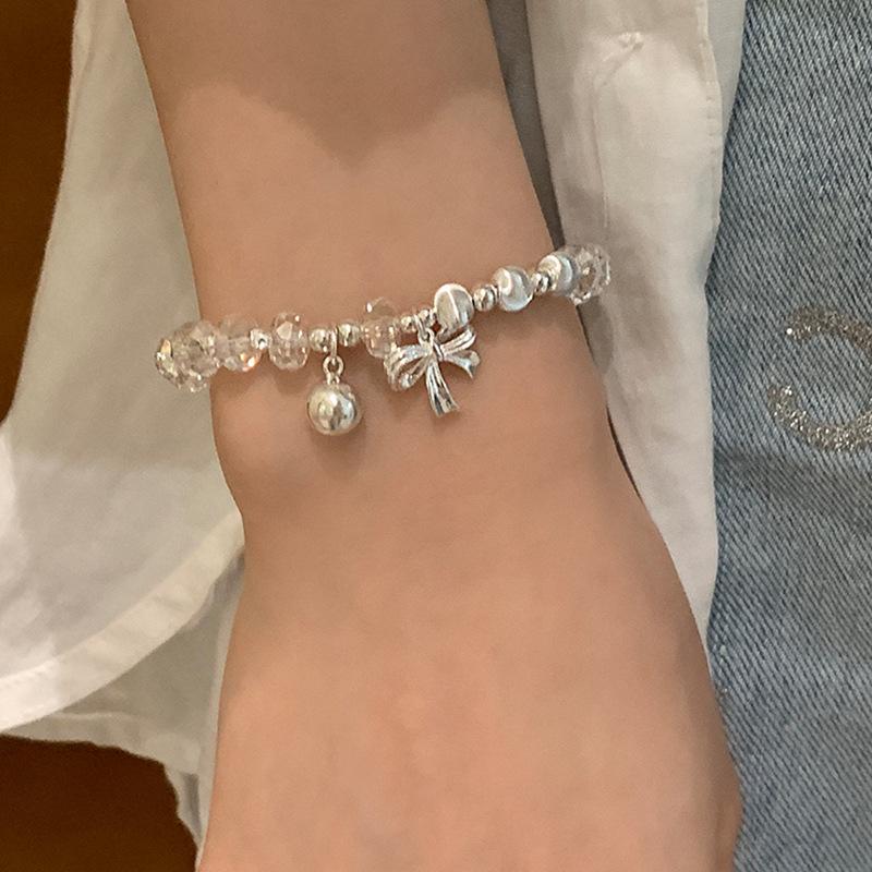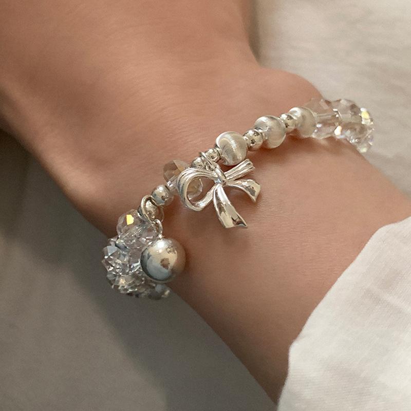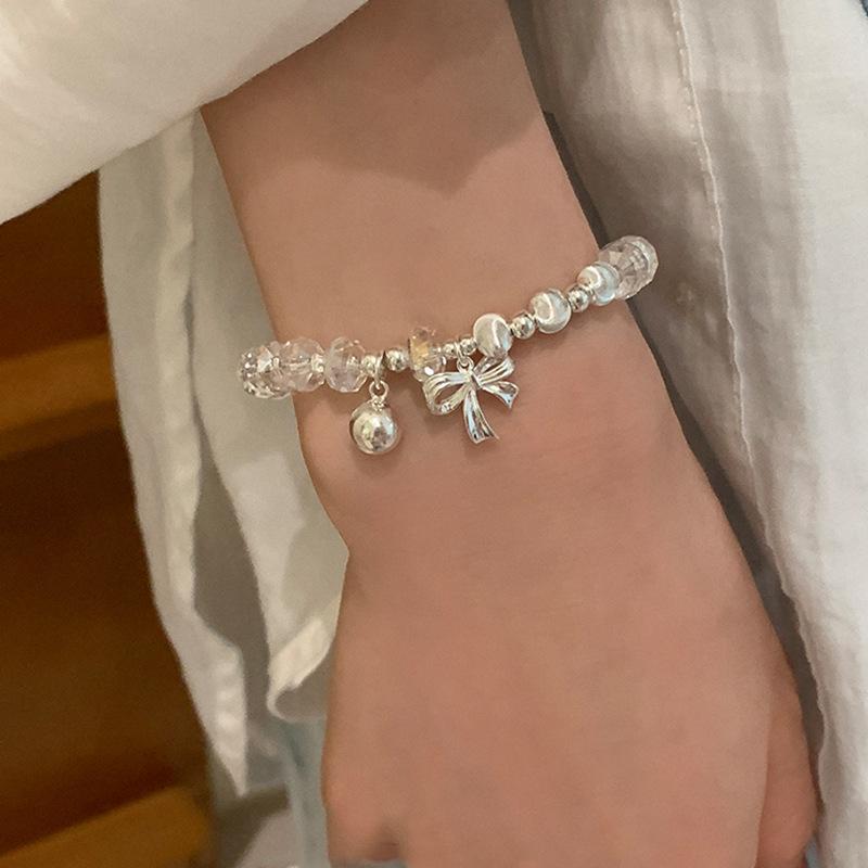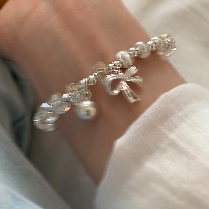 Pulsera Colgante de Lazo con Cuentas Transparente para Mujer, Nicho de Lujo Ligero, Simple, Personalidad, Moda, Elegante, Combinable