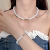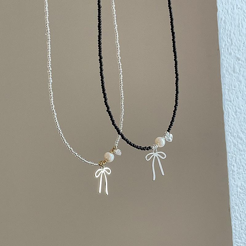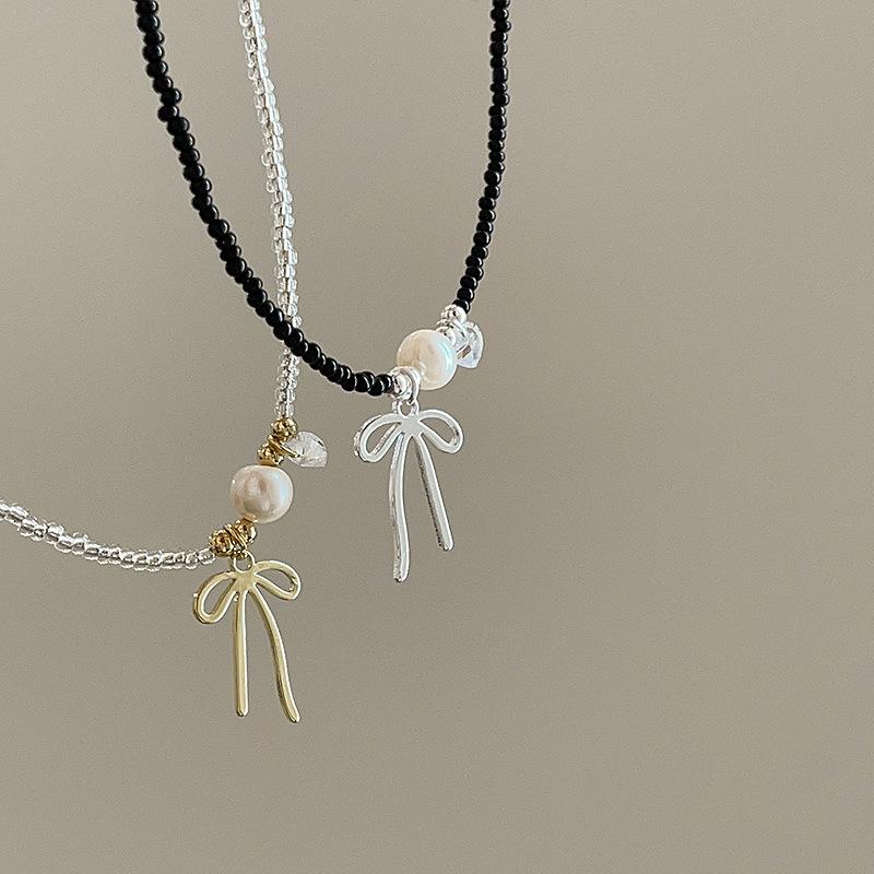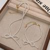 Collar ligero de lujo con perlas dulces y lazo para mujer, estilo retro, elegante, a la moda, con personalidad, combina con todo, cadena para clavícula.