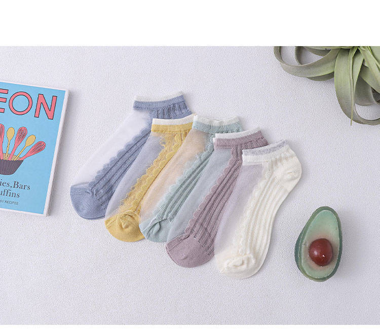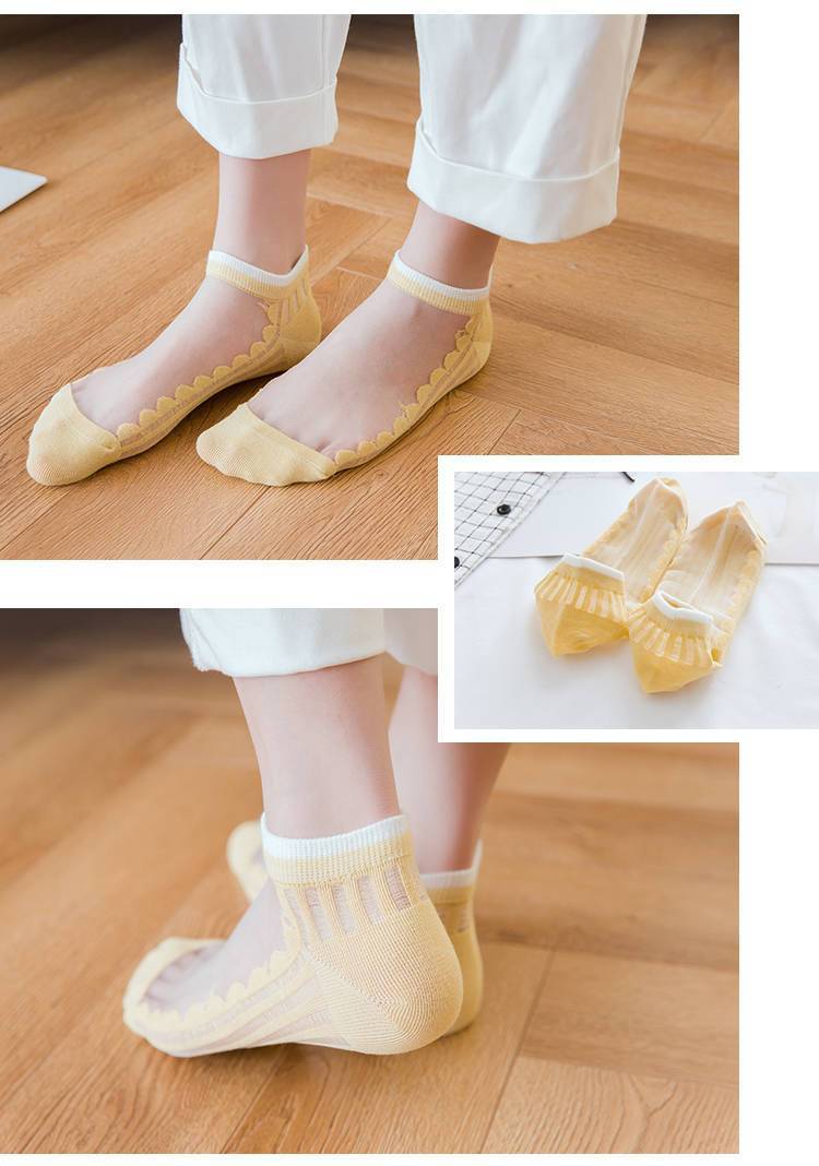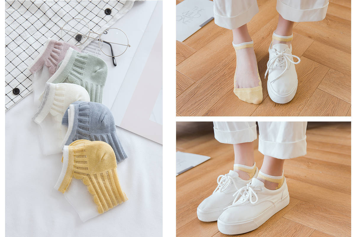 Calcetines de seda de cristal para mujer, calcetines de algodón con interior de moda, calcetines finos y poco profundos, calcetines japoneses transparentes de cristal, calcetines náuticos.
