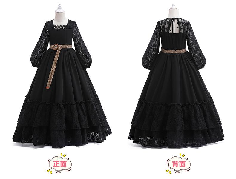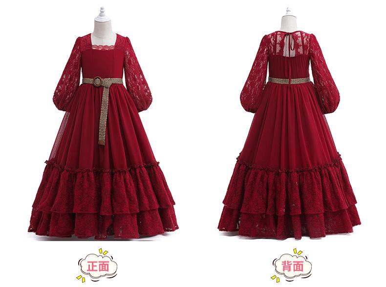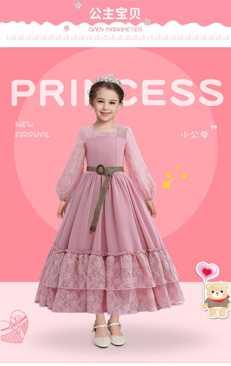 Vestido de princesa de encaje para niña, nuevo estilo europeo y americano, vestido largo de gasa con temperamento para niña de flores, vestido de actuación para niños