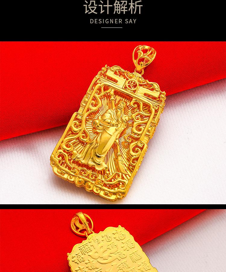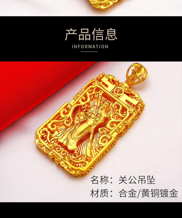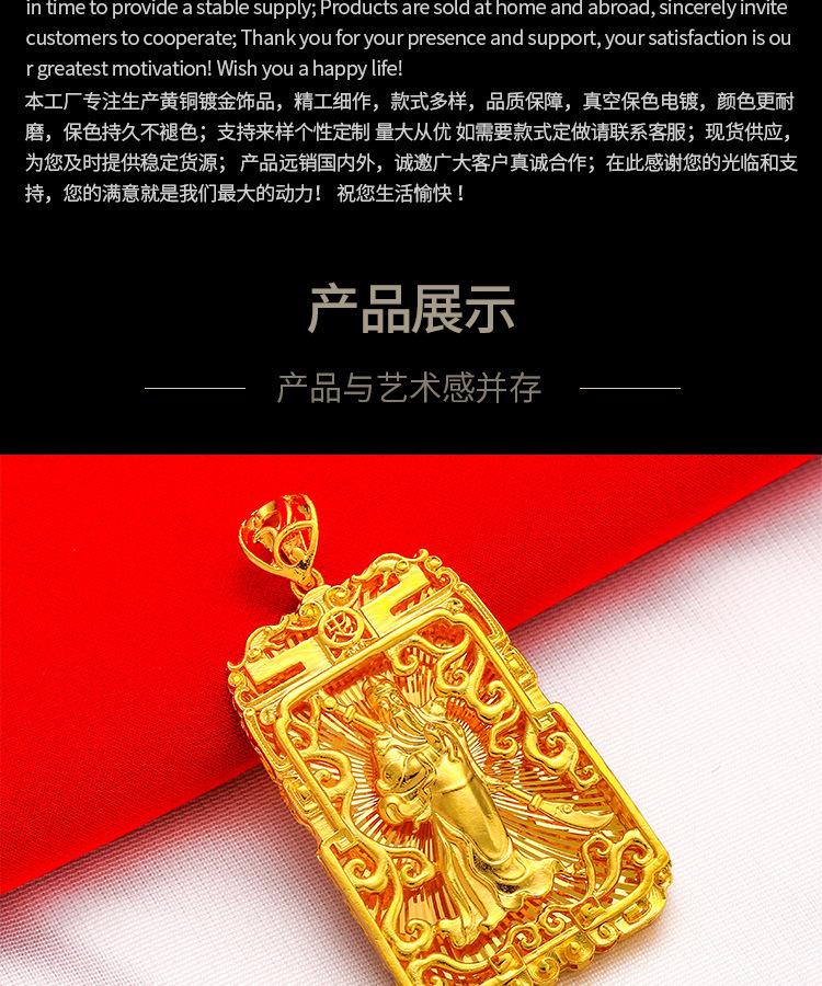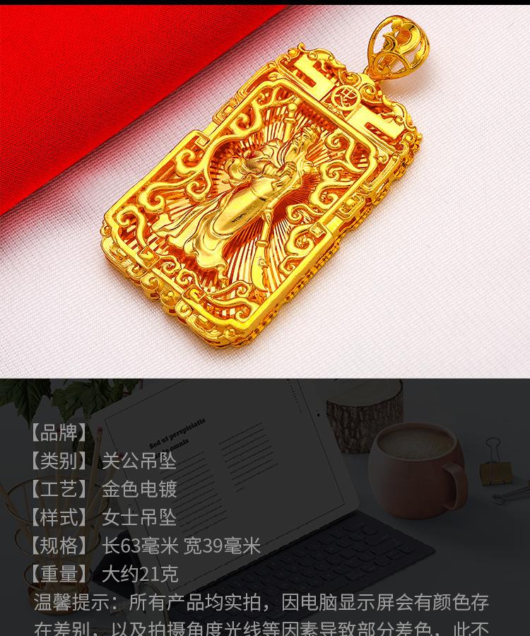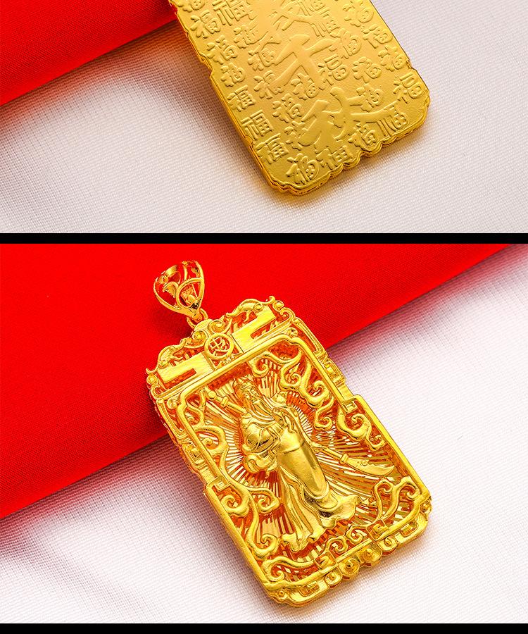 Colgante cuadrado de la marca Guan Gong, colgante de oro arena de Vietnam de la marca Guan Gong, colgante largo de oro de imitación Guan Yun para hombre, imitación de 24 k, venta al por mayor