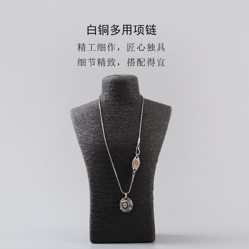 Collar multiusos de cobre blanco estilo Xizang Cadena colgante Xizang Tianzhu Colgante para hombre y mujer Cadena para clavícula Cadena para suéter