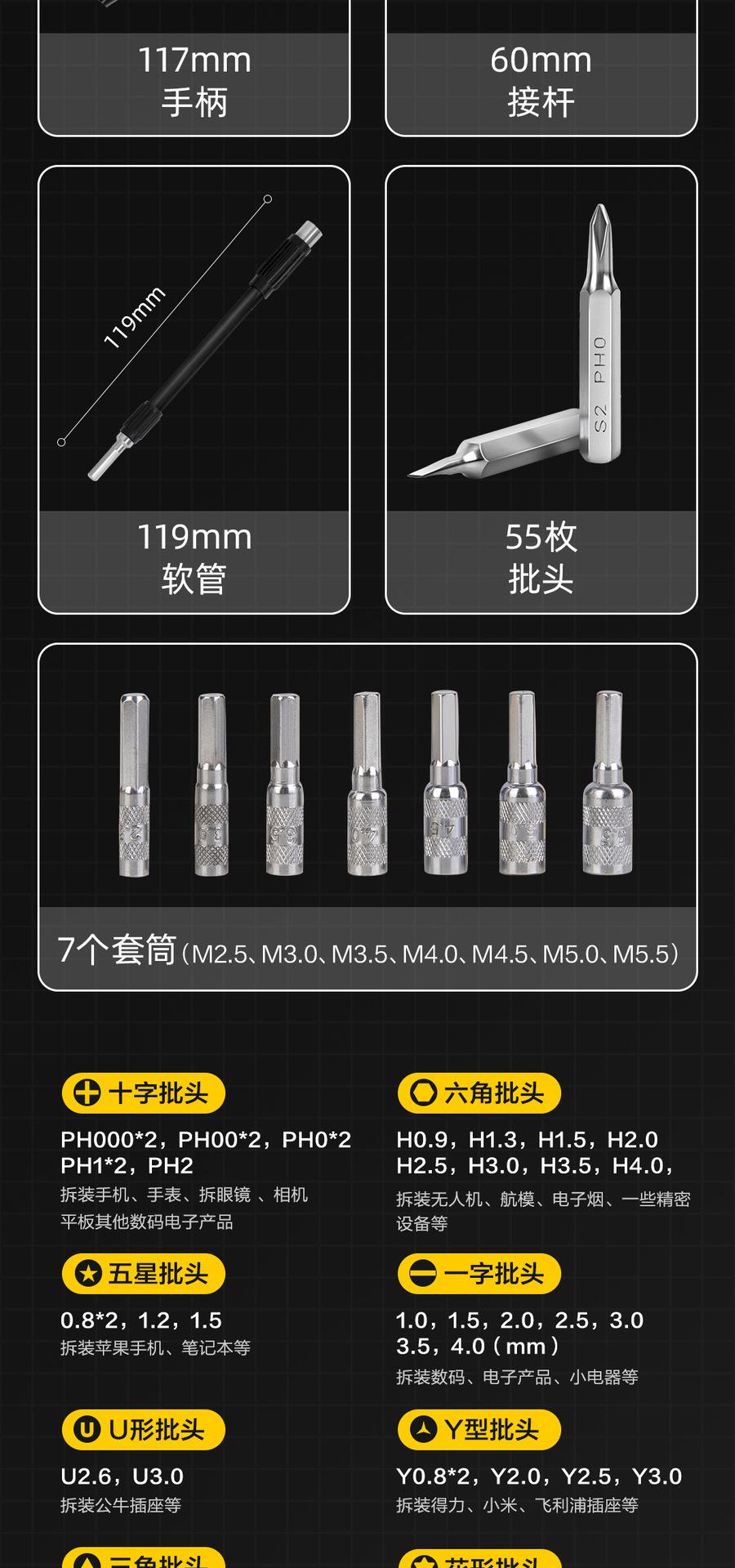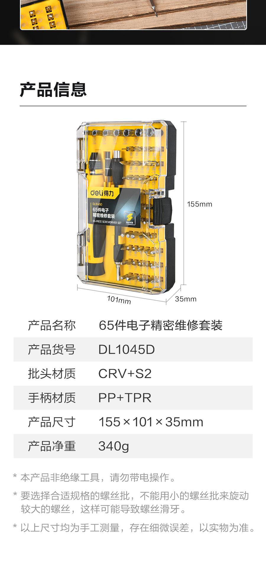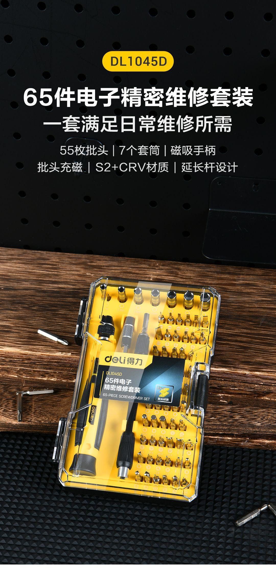 Deli Dl1045D Juego de Destornilladores Electrónicos Multifuncionales de Precisión para Reparación 65 Piezas Juego de Destornilladores para Reparación de Teléfonos Móviles