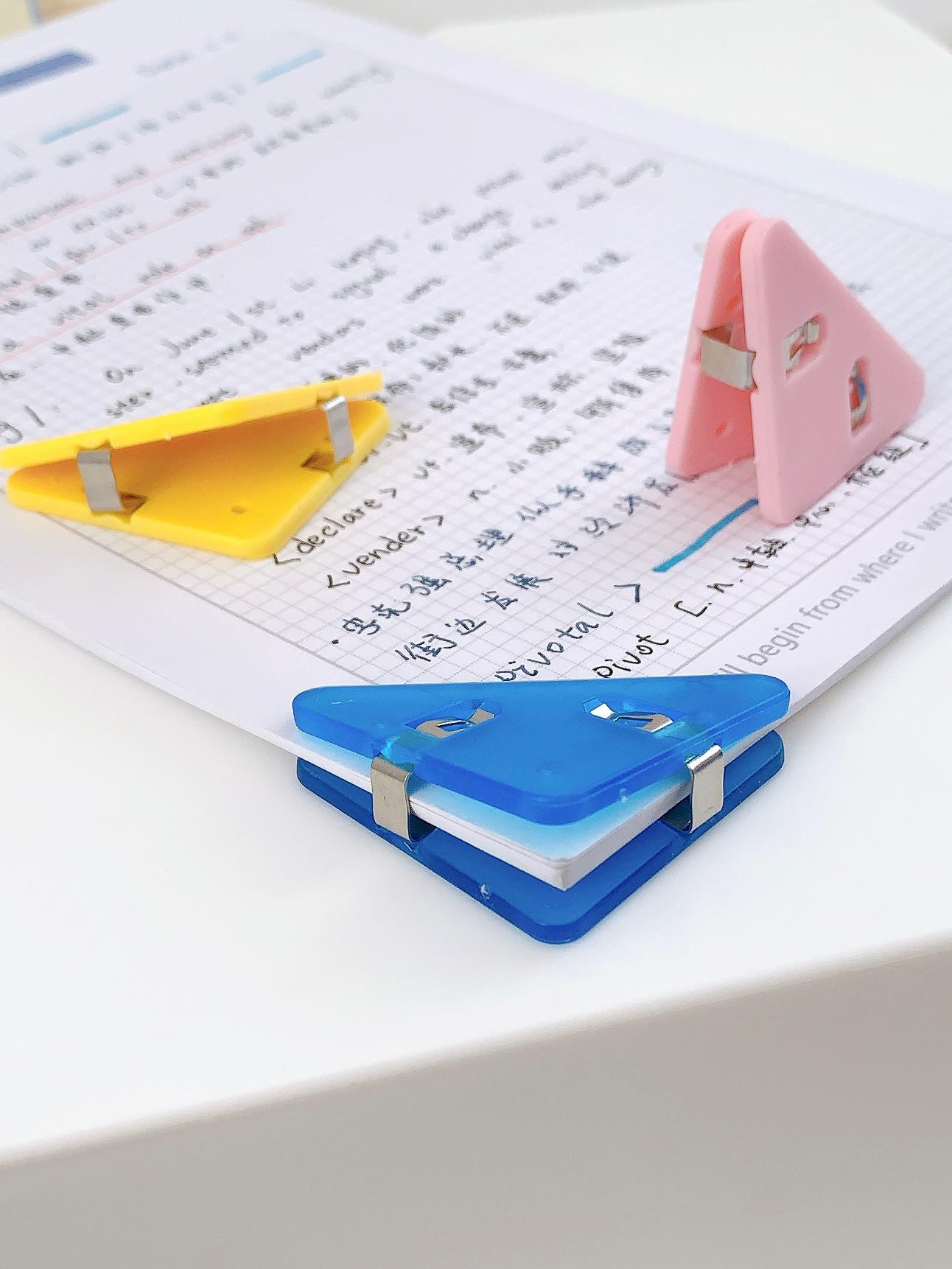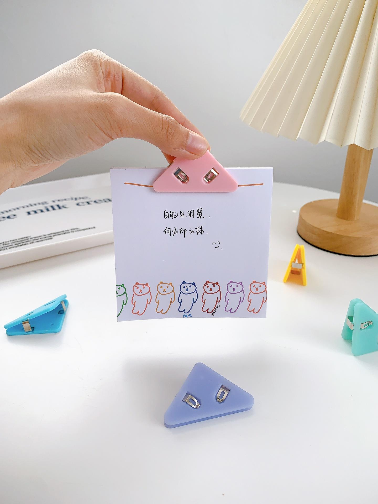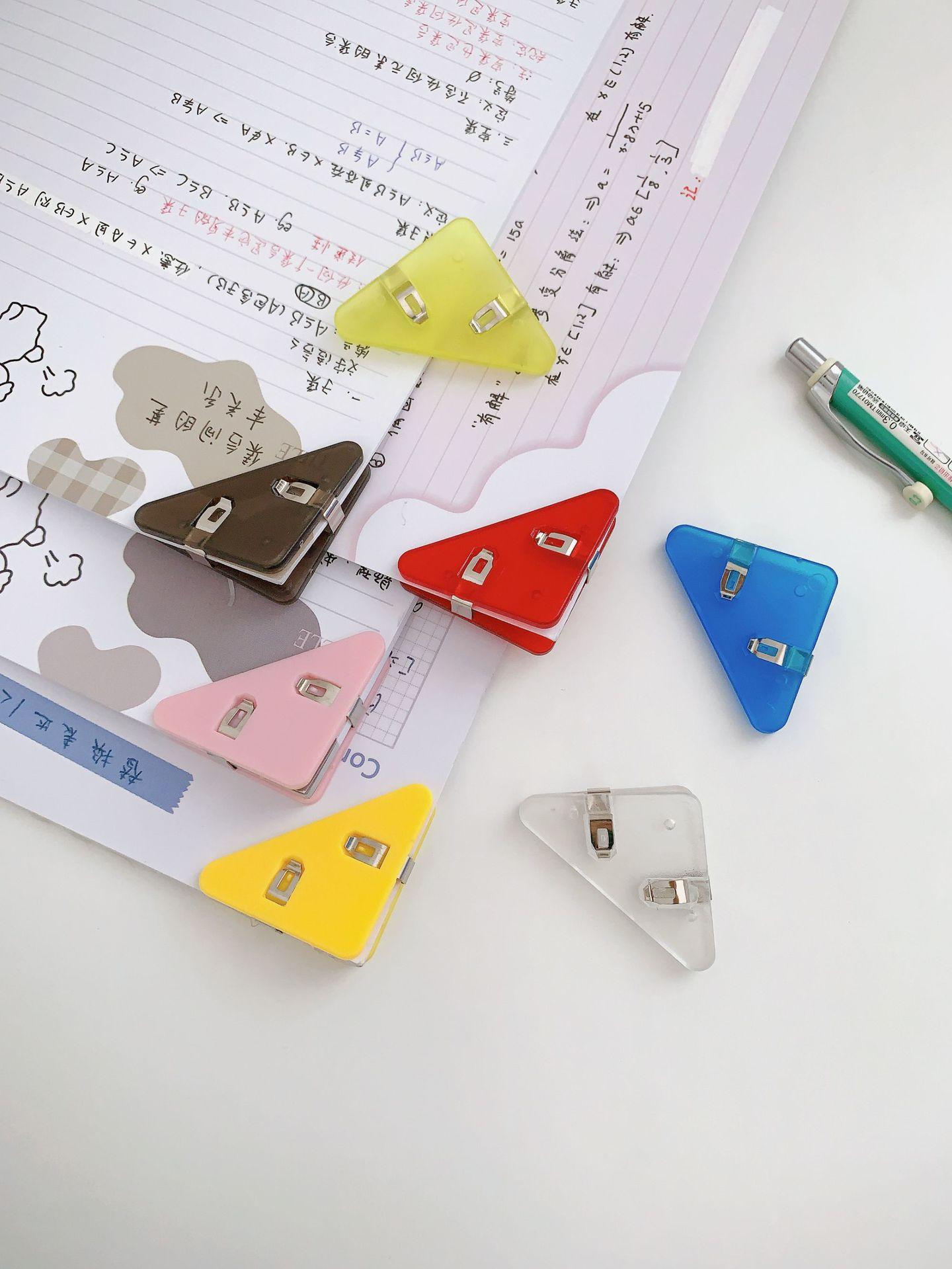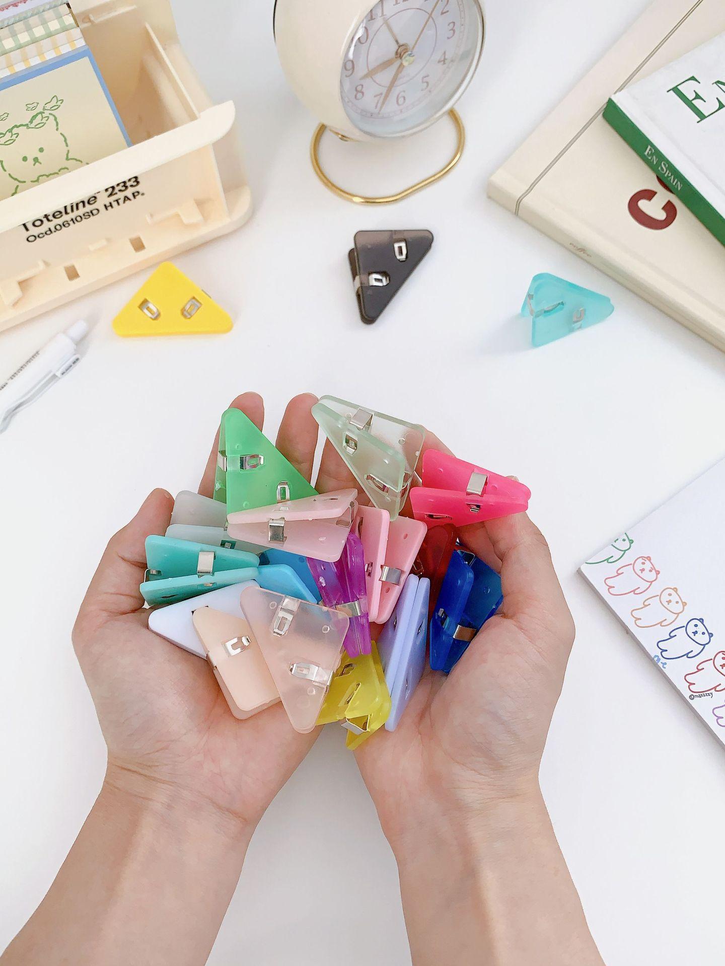 Cuenta de mano clip triangular clip de plástico color papelería papel de prueba clip de cola larga carpeta transparente borde de sellado clip de esquina mayoreo
