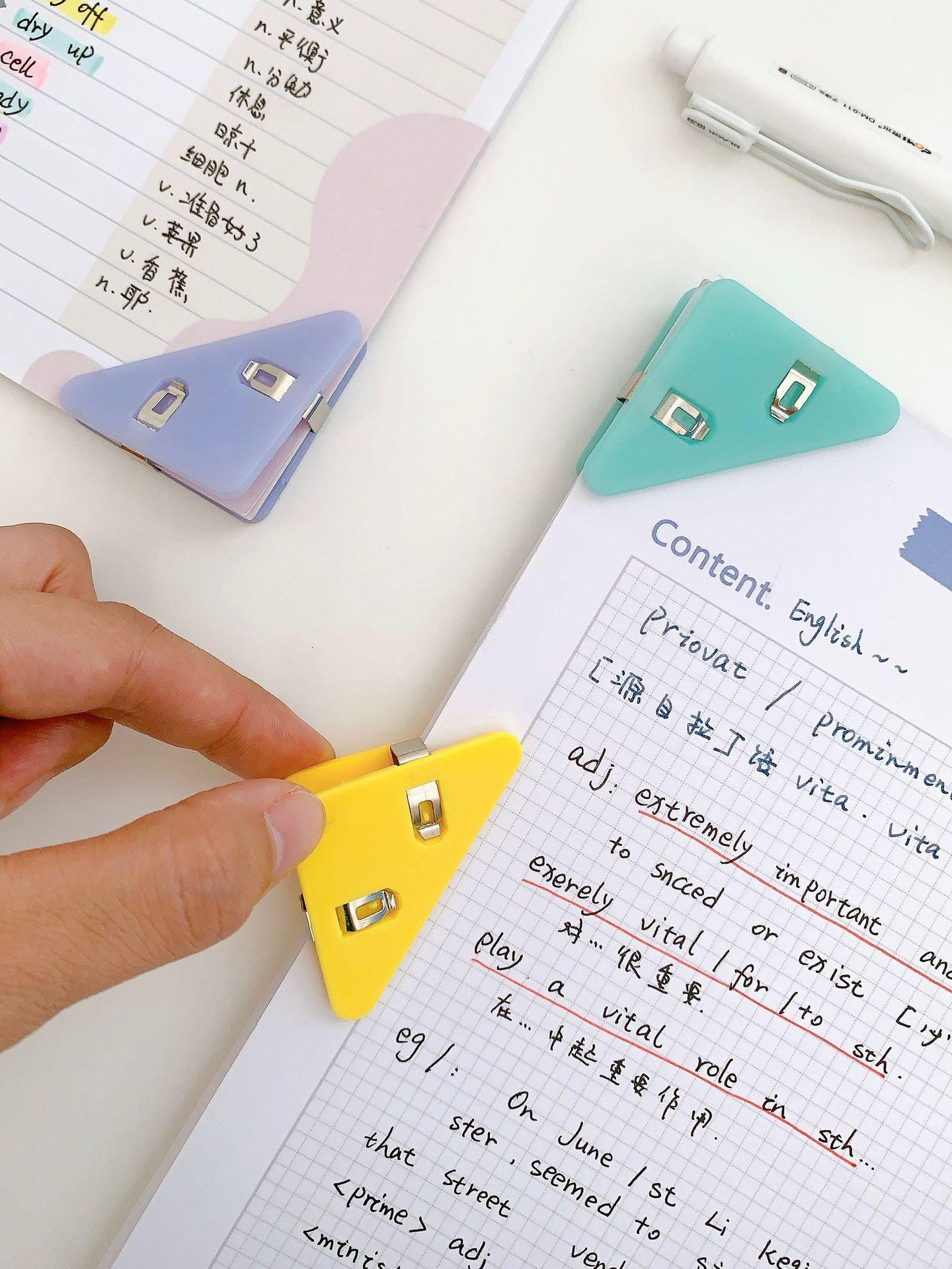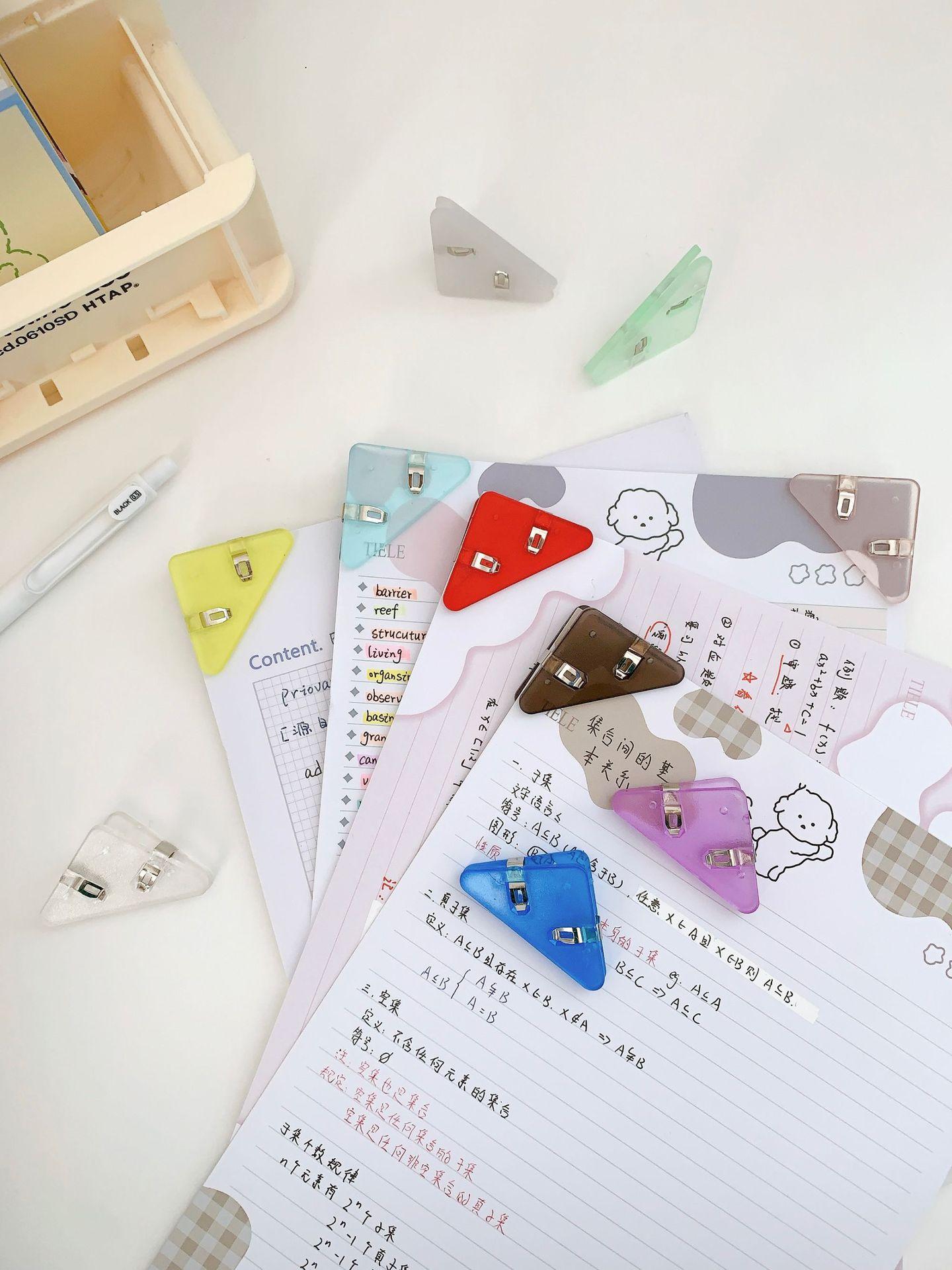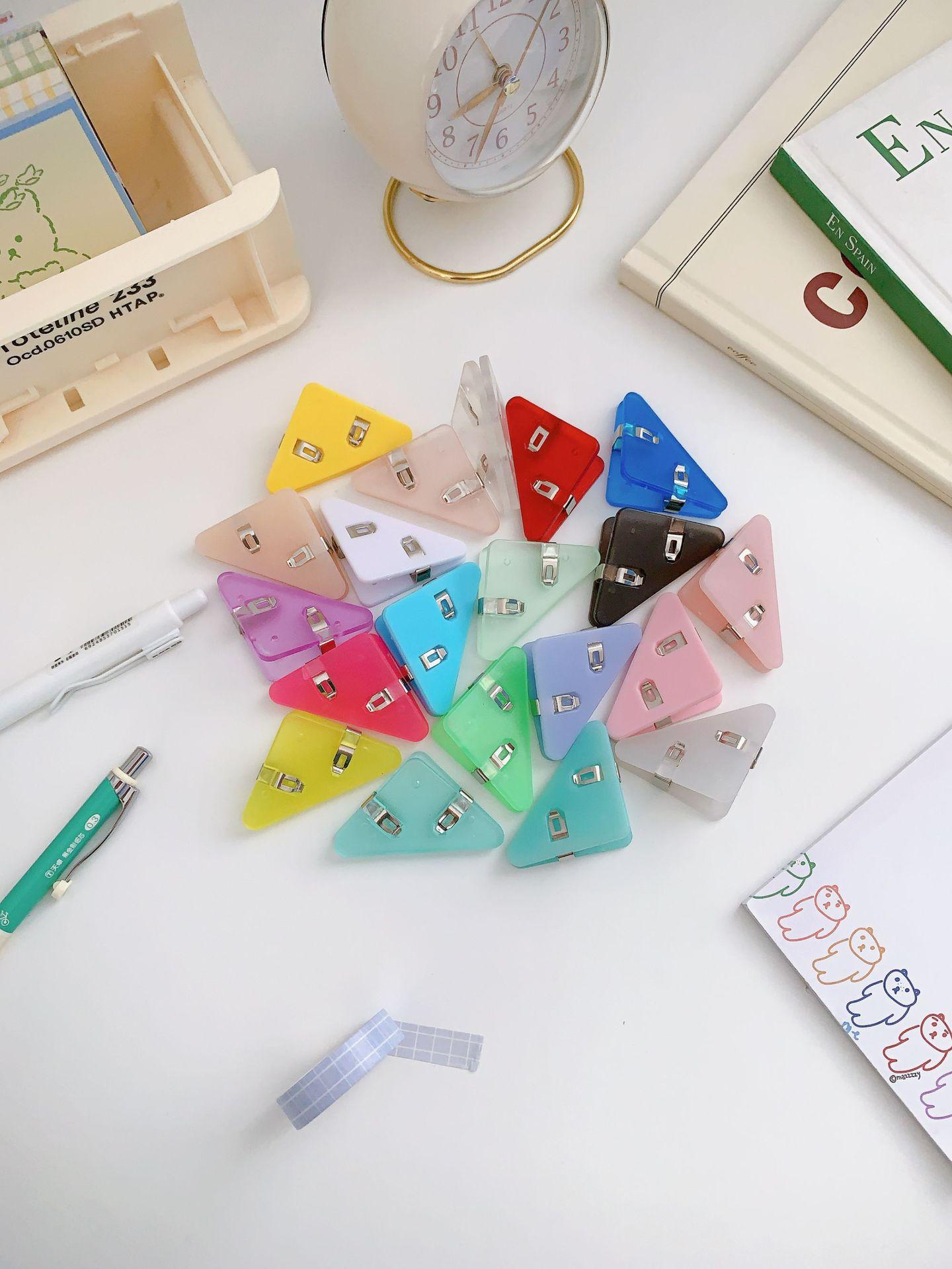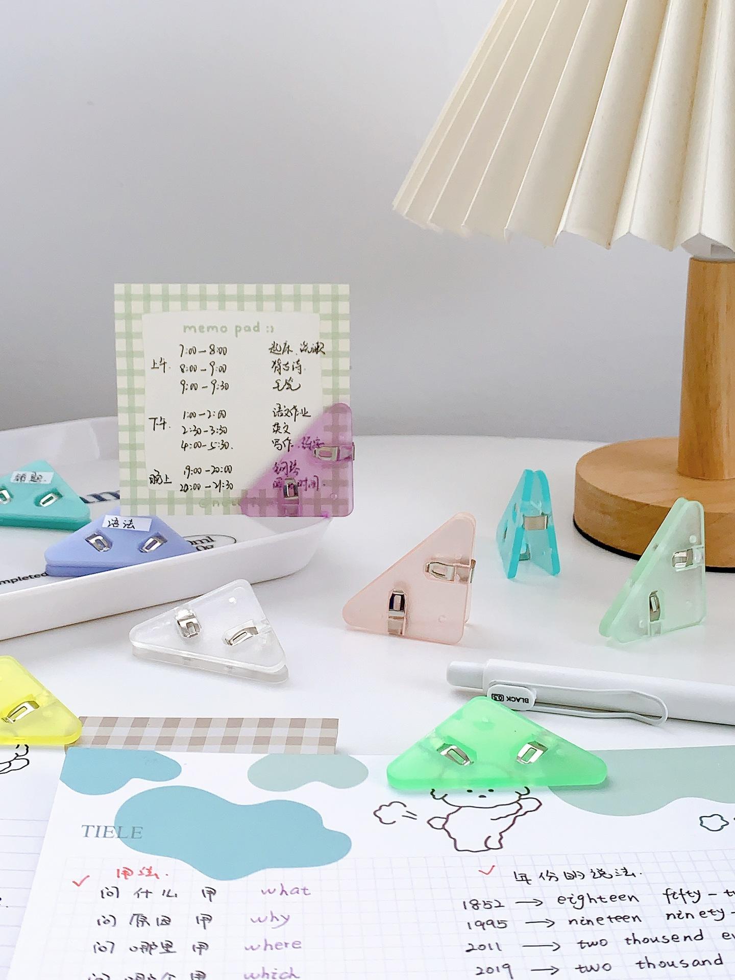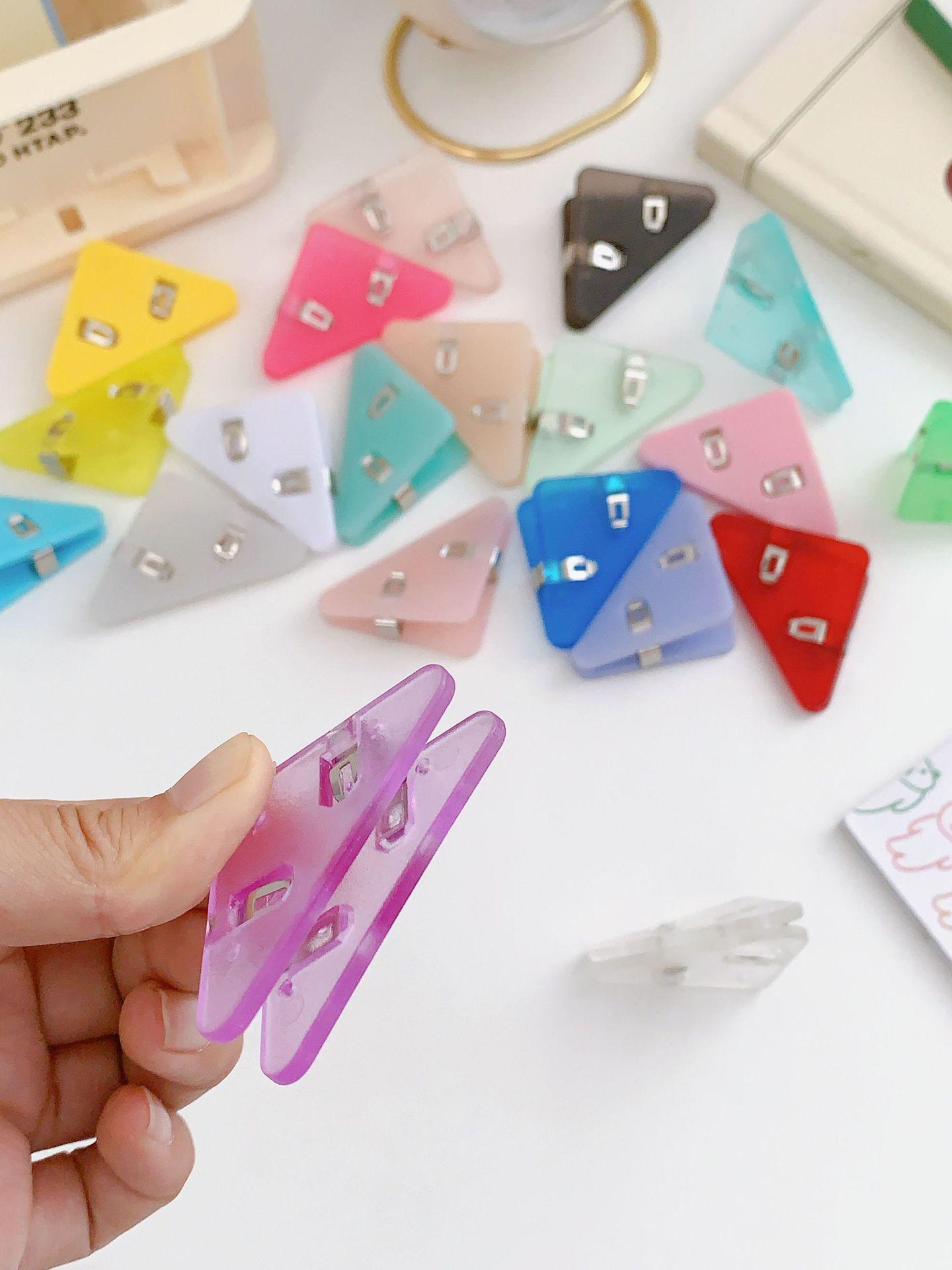 Cuenta de mano clip triangular clip de plástico color papelería papel de prueba clip de cola larga carpeta transparente borde de sellado clip de esquina mayoreo