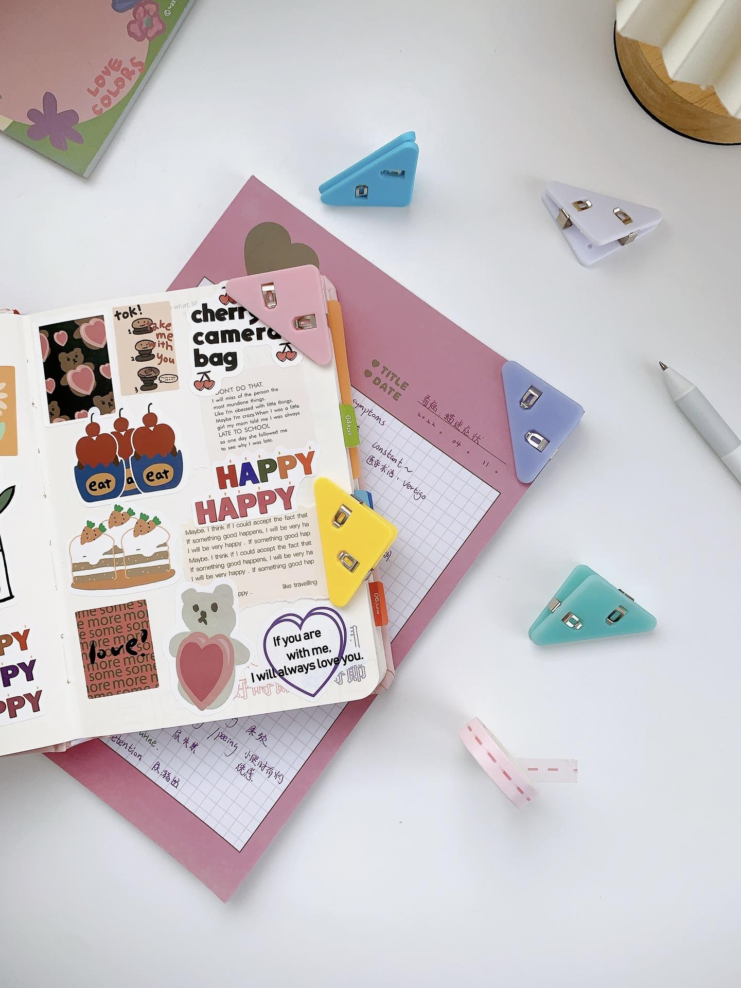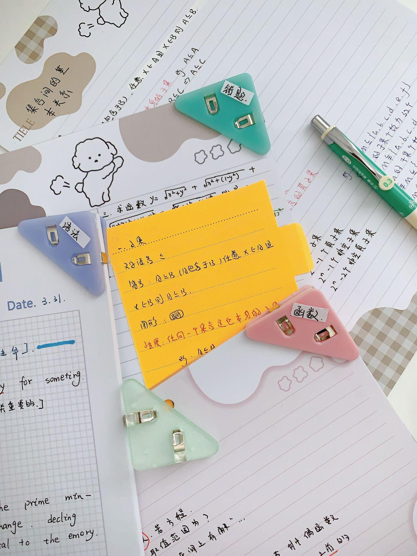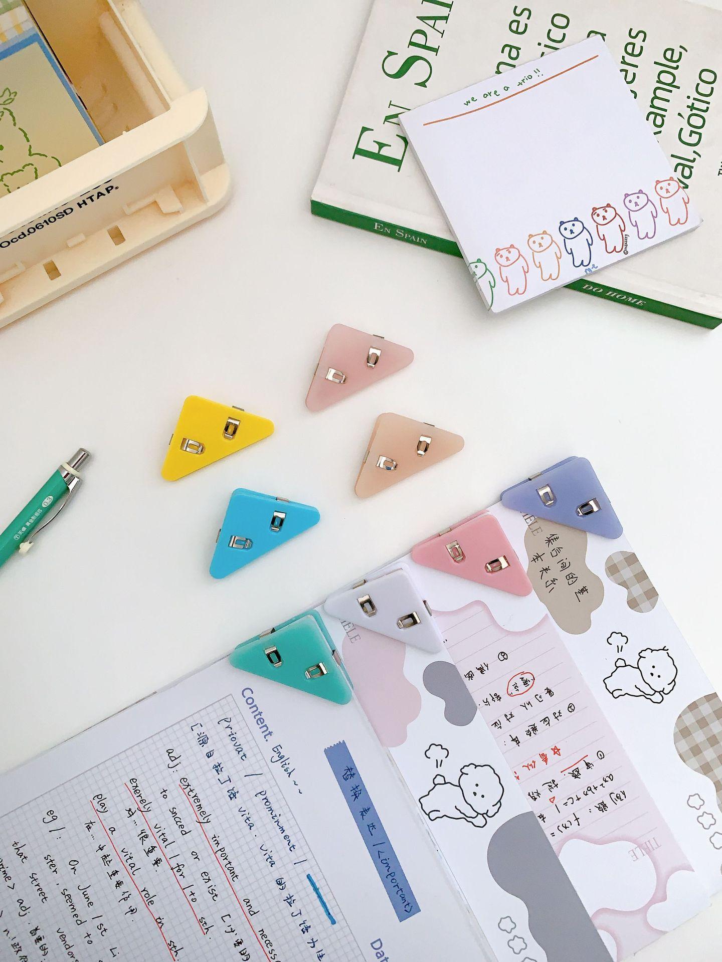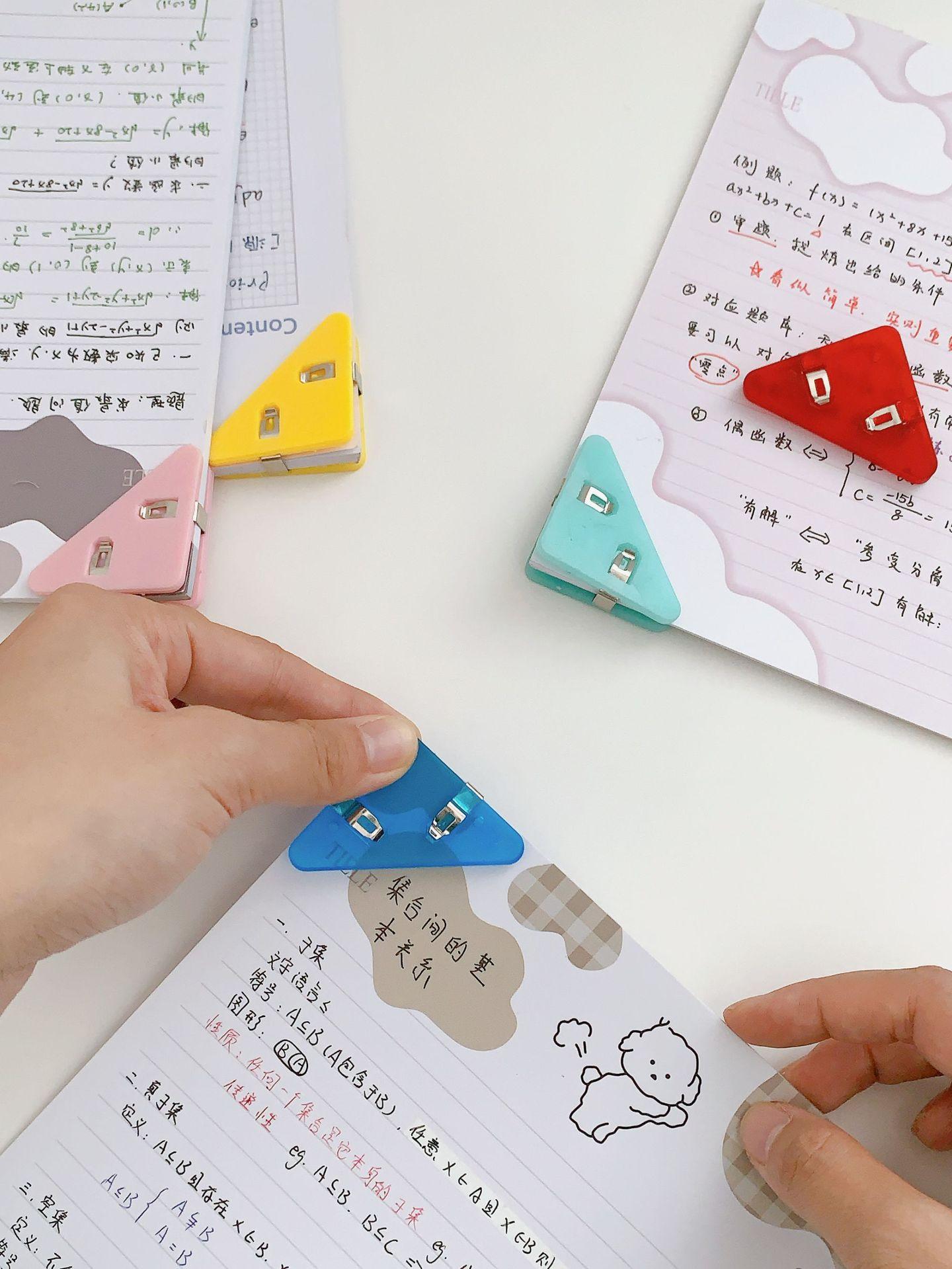 Cuenta de mano clip triangular clip de plástico color papelería papel de prueba clip de cola larga carpeta transparente borde de sellado clip de esquina mayoreo