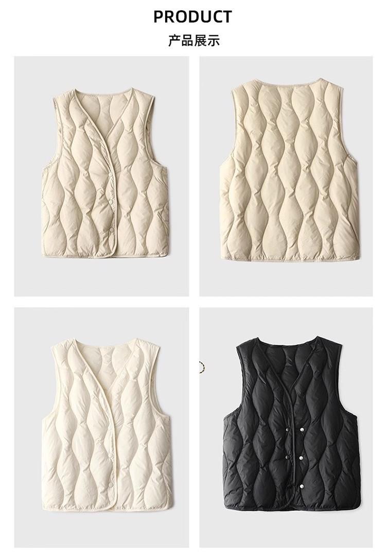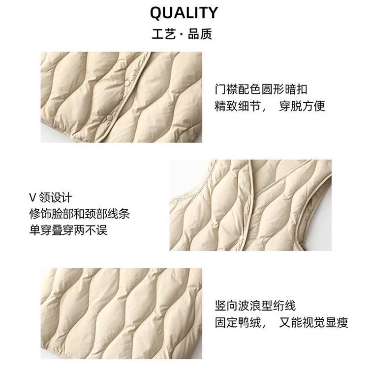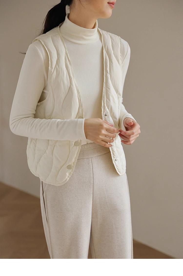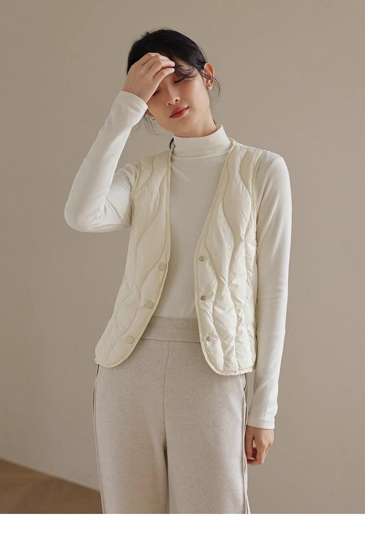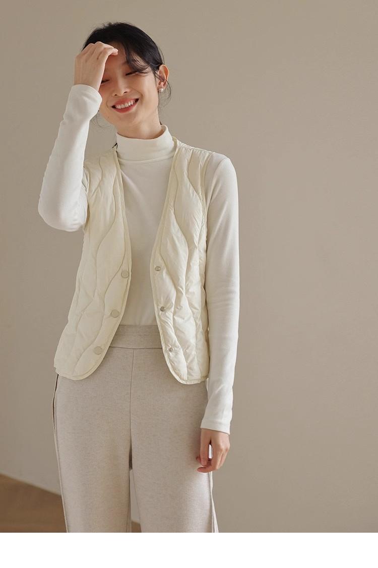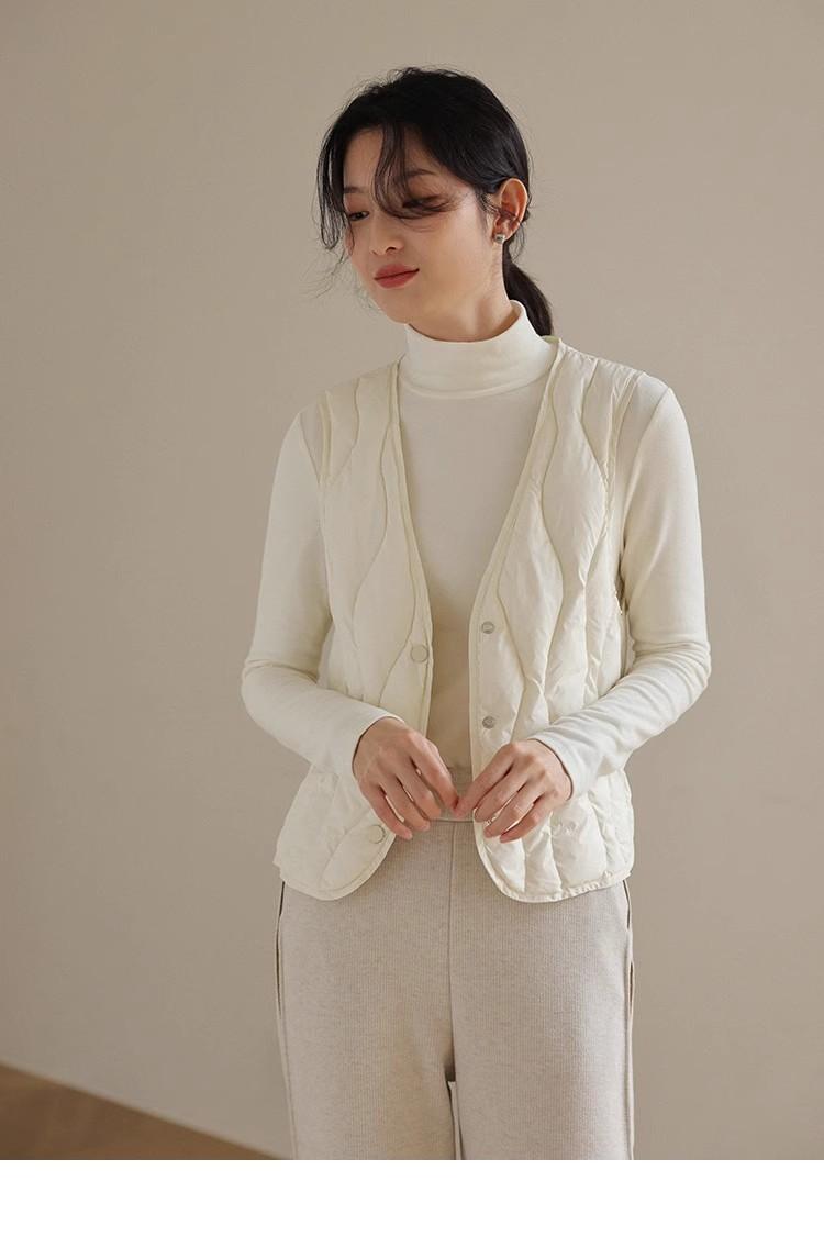 Chaleco de plumón ligero y cálido para mujer, de otoño e invierno, con cuello en V corto y ajustado.