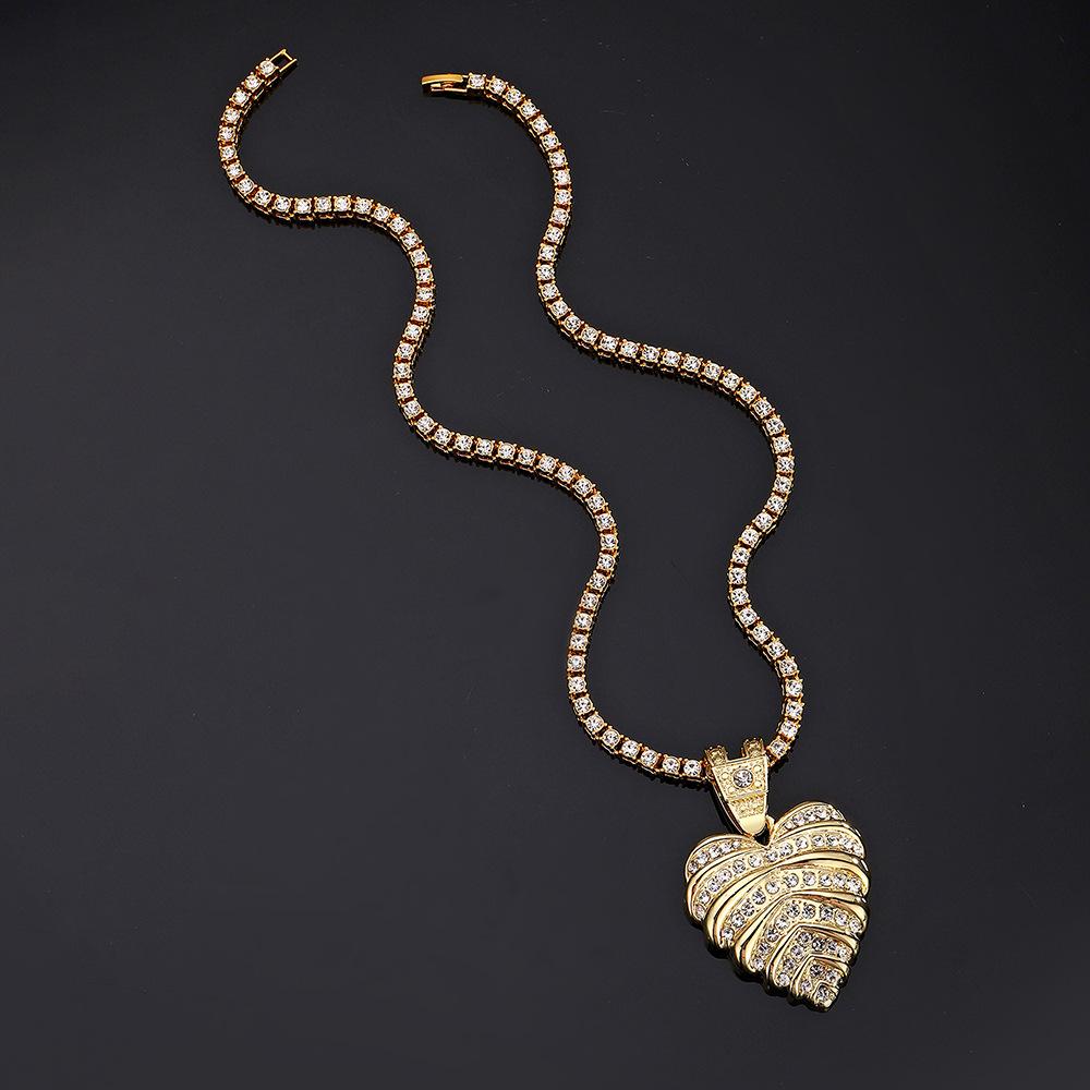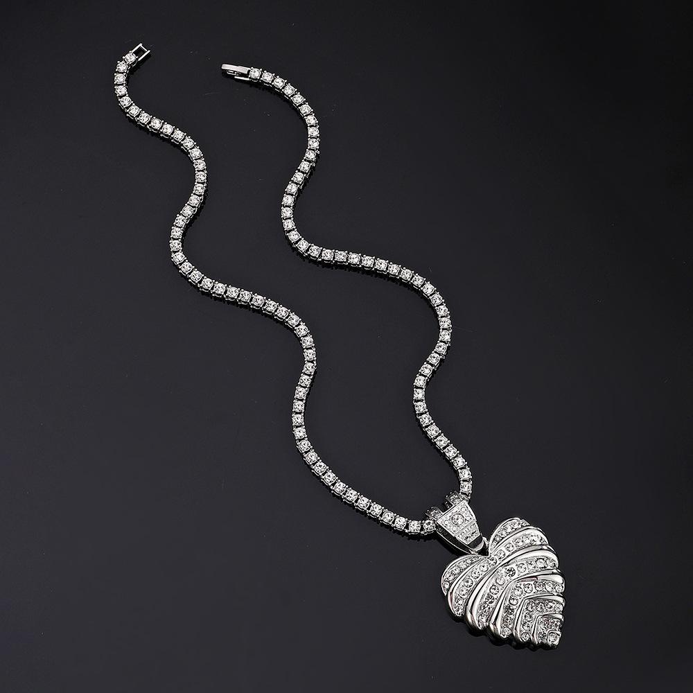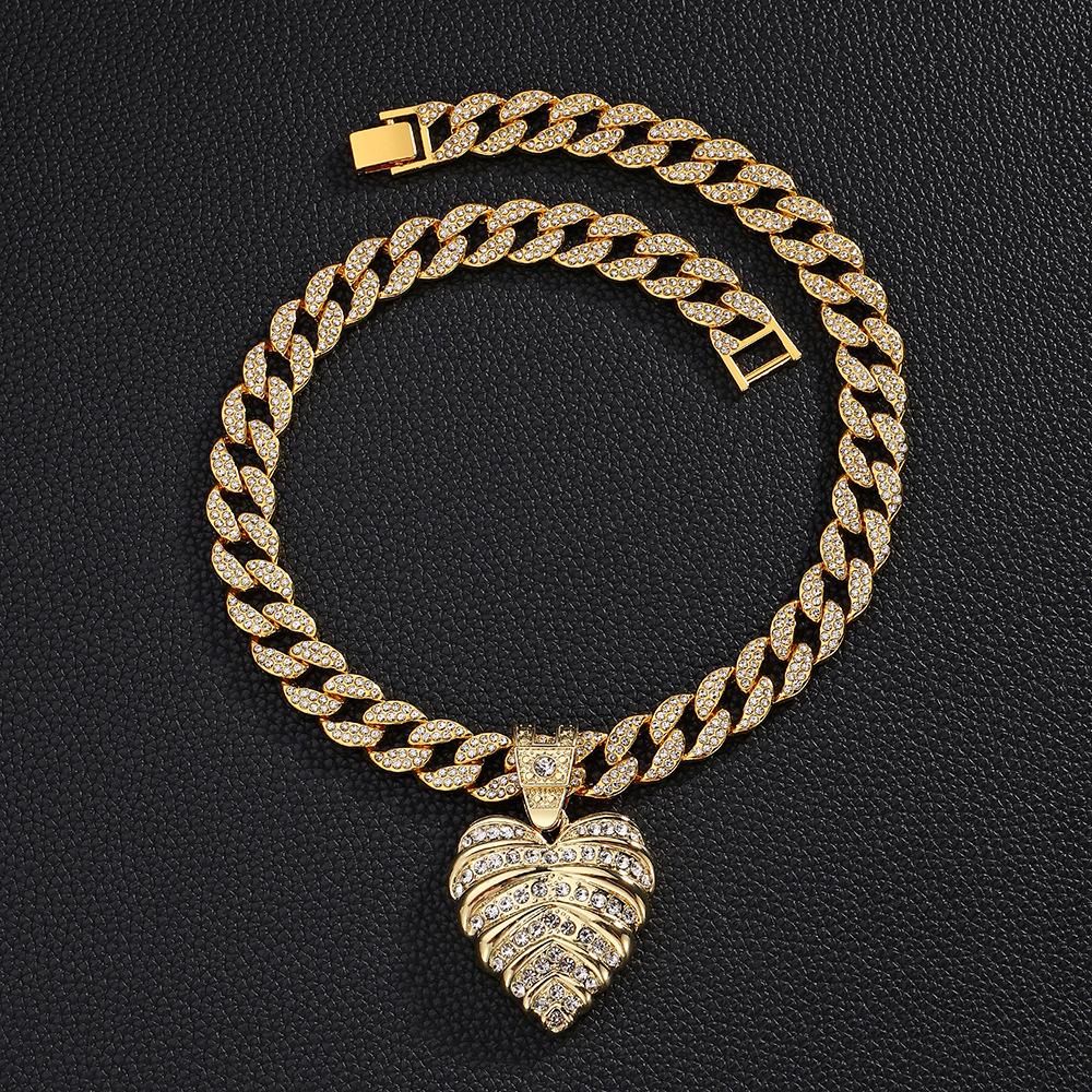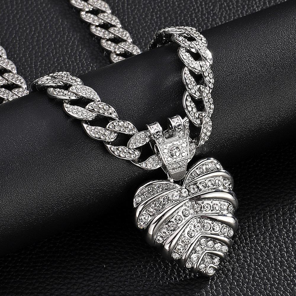 TEMU Venta Caliente Flor Diamante Completo Amor Colgante de Aleación Transfronterizo Hip Hop Collar Sentido del Diseño Personalidad Collar para Hombre y Mujer