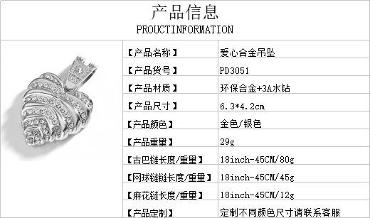 silver single pendant (without chain), silver pendant with 18inch Cuban chain (45CM), Gold single pendant (wit...