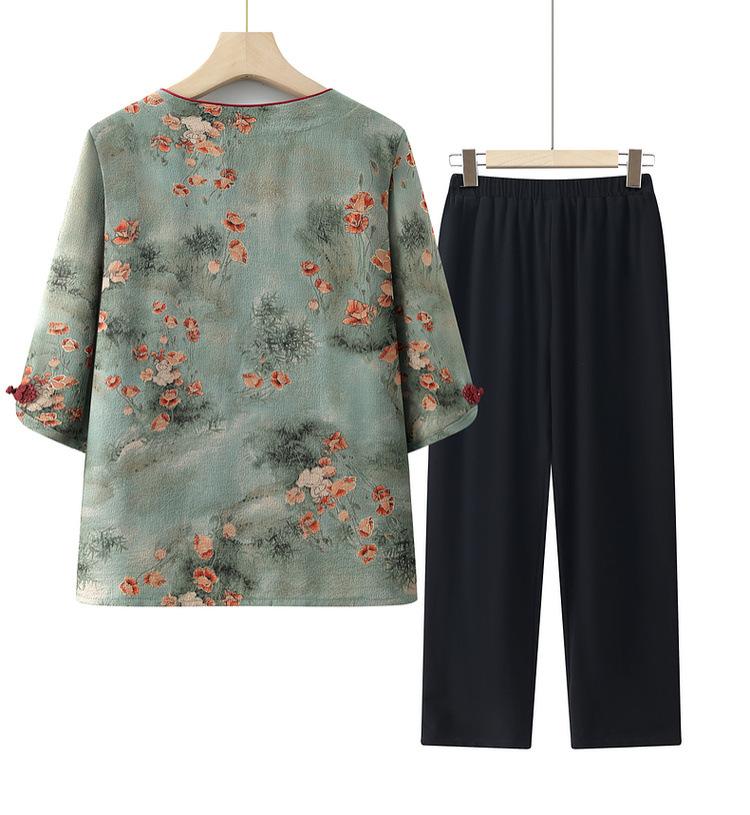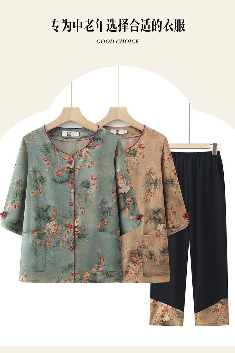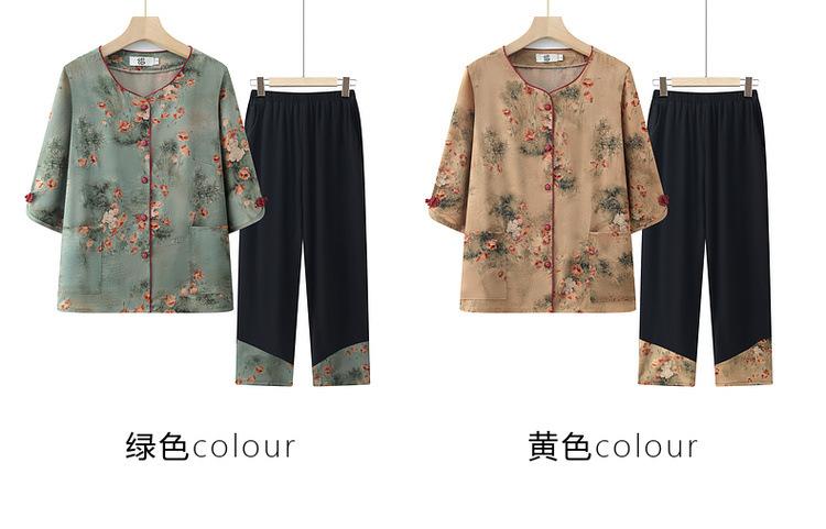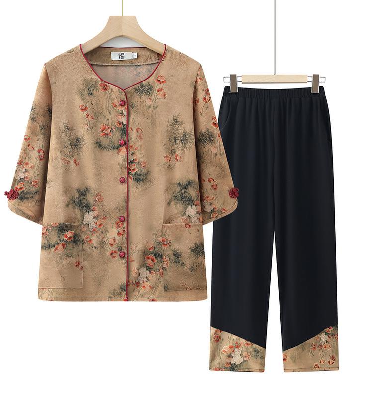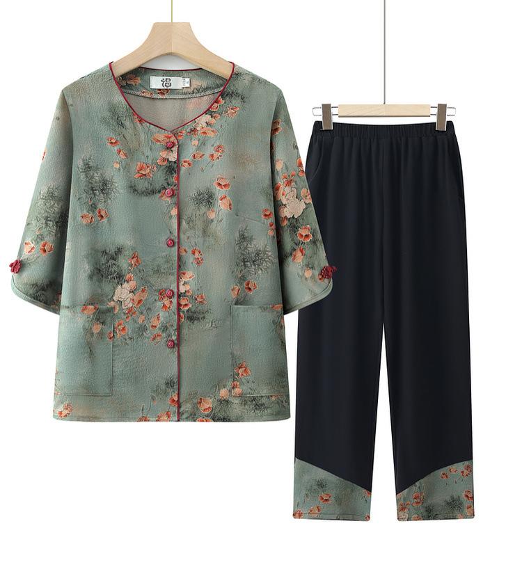 Vestido de abuela, traje casual de verano, vestido de mujer de mediana edad, camisa de media manga para madre, conjunto de dos piezas, cárdigan para anciana y anciana.