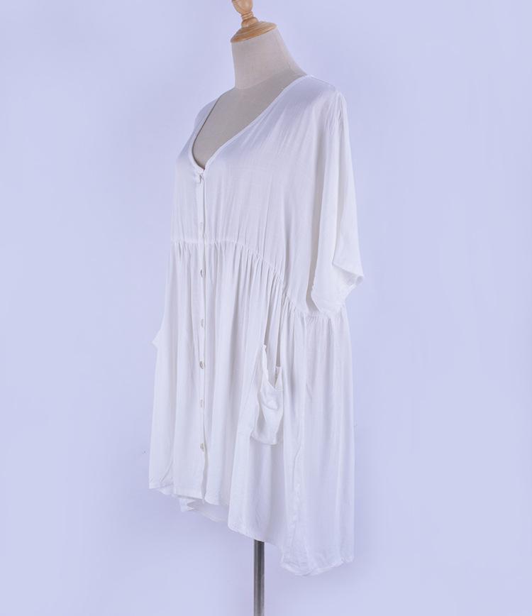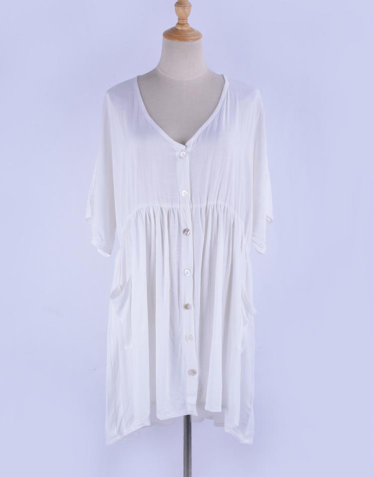 Venta al por mayor, nueva chaqueta de bikini de tela arrugada de estilo europeo y americano con dos bolsillos y botones ocultos, para playa, traje de baño, cárdigan para mujer